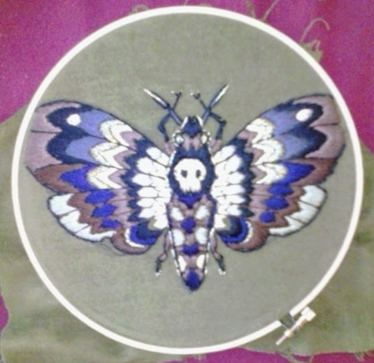 embroidered deaths head moth