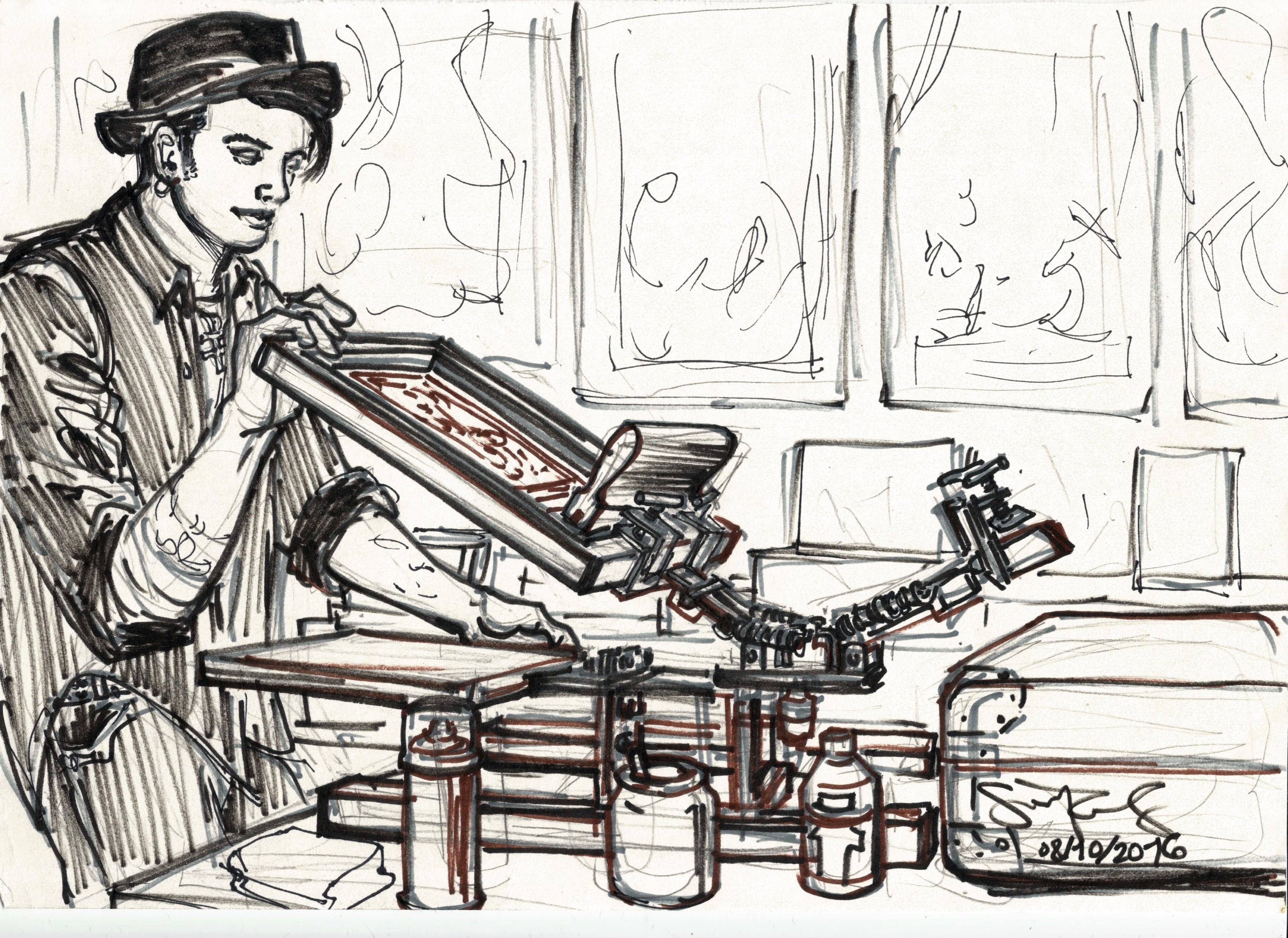 Rob Hanna screenprinting at ESDIP Berlin Oct 8 2016 by Suzanne Forbes