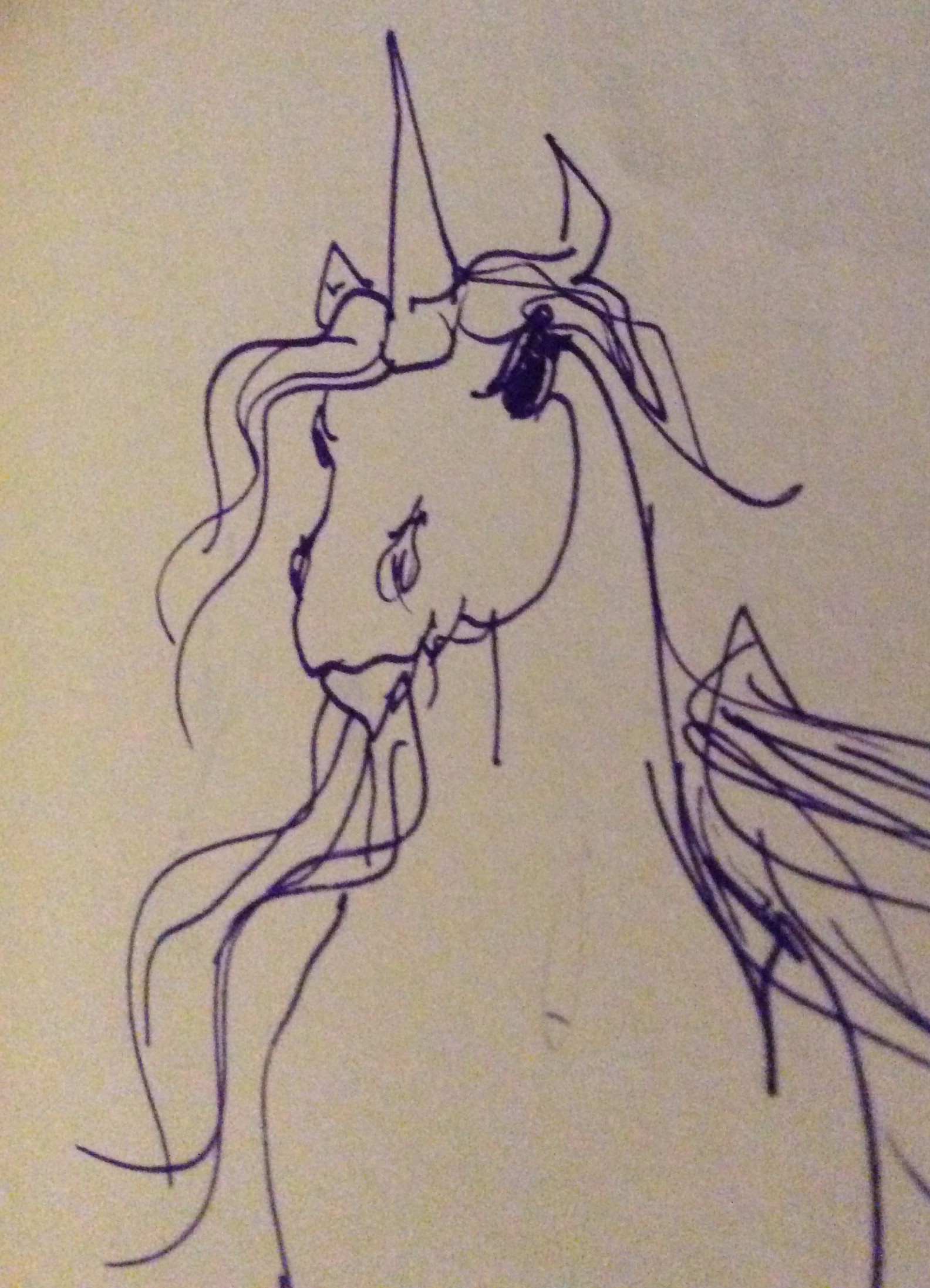 My “Angry Unicorn” tag, journal drawing winter 1981