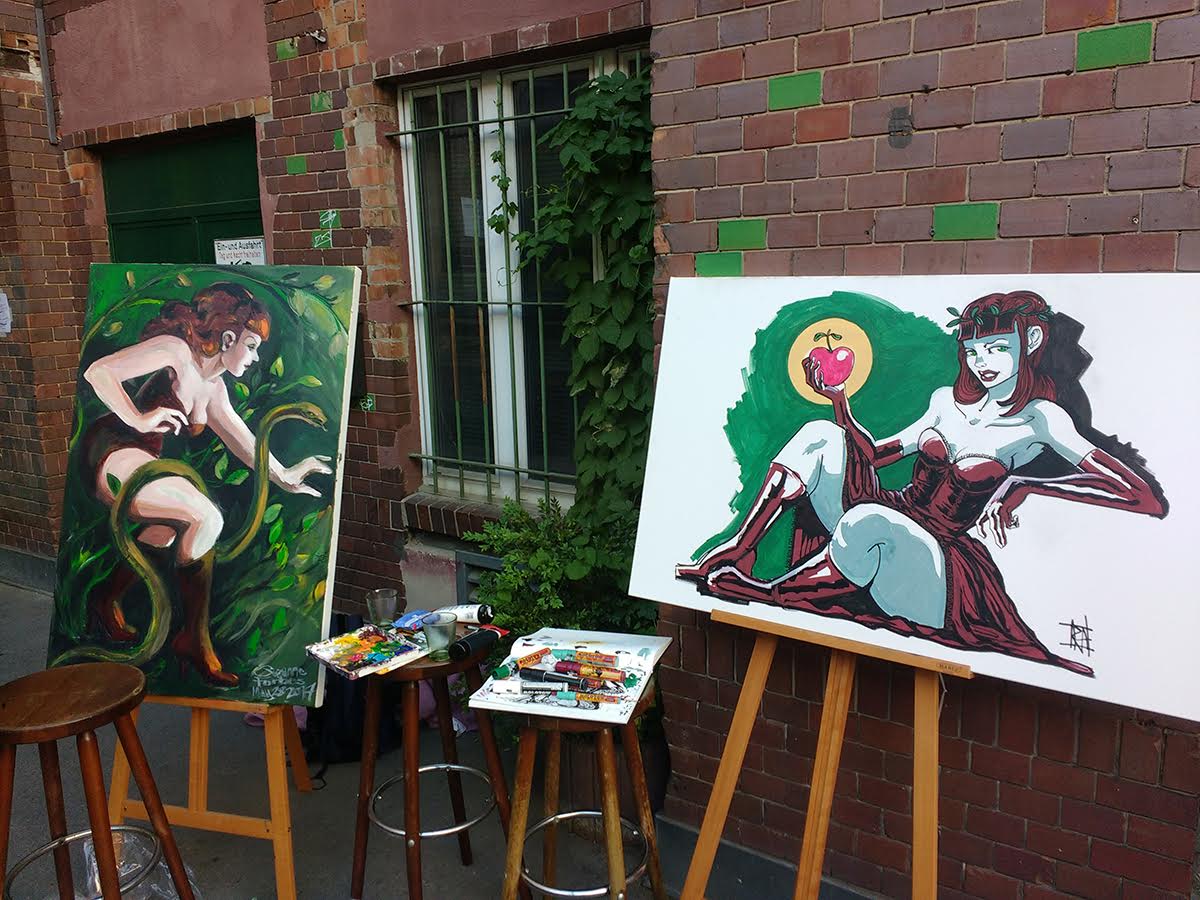 Paintings by Suzanne Forbes and Rafa Alvarez for Dr Sketchys Berlin May 2017