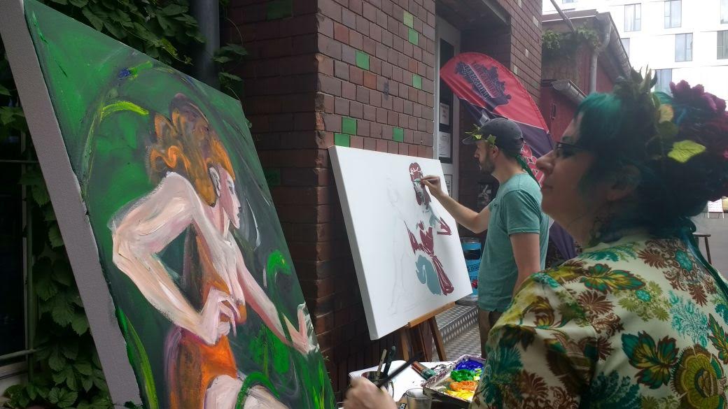 Suzanne Forbes and Rafa Alvarez painting at Ballhaus Berlin May 28 2017