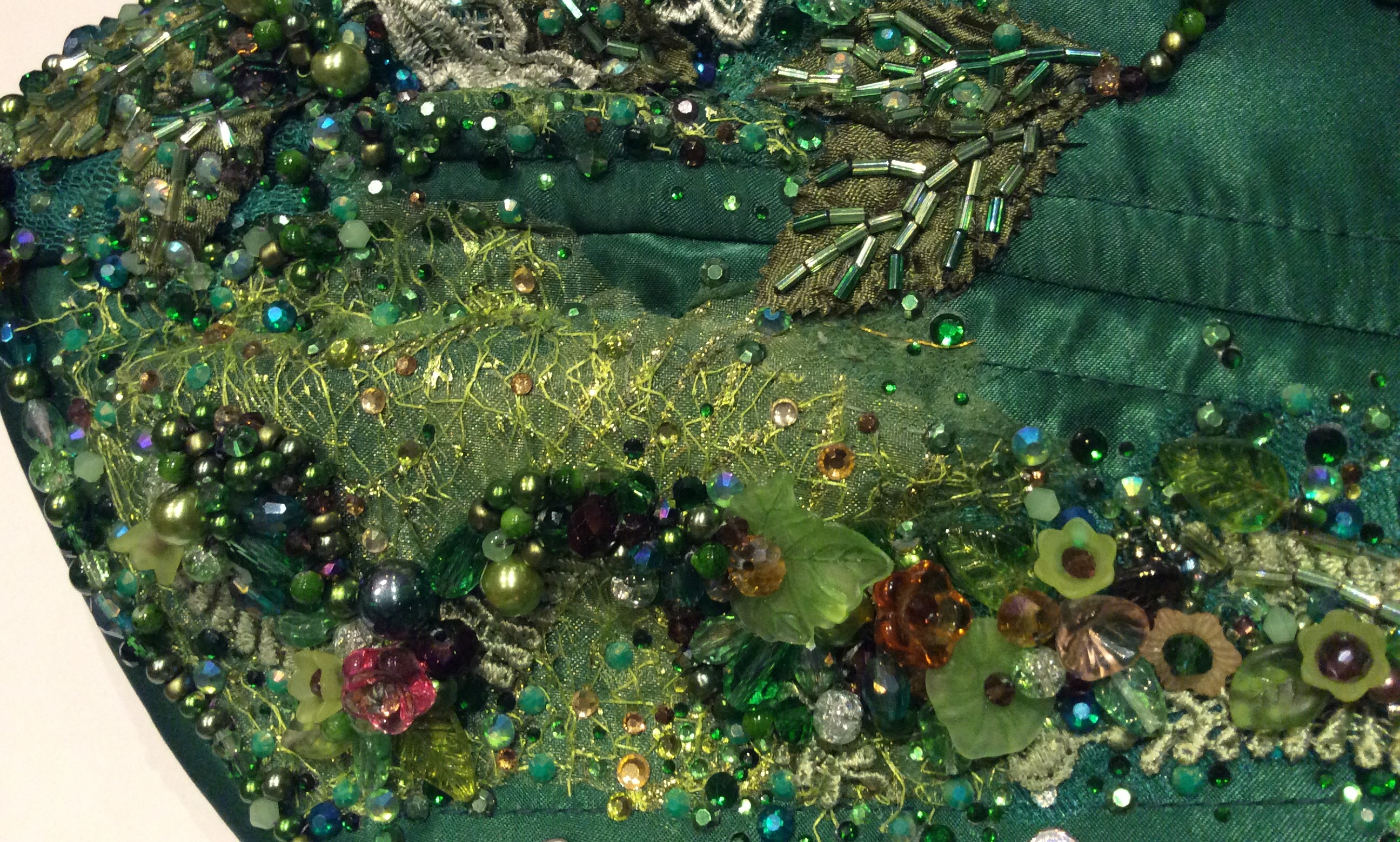 Bead embroidered green woman corset by Suzanne Forbes June 2017