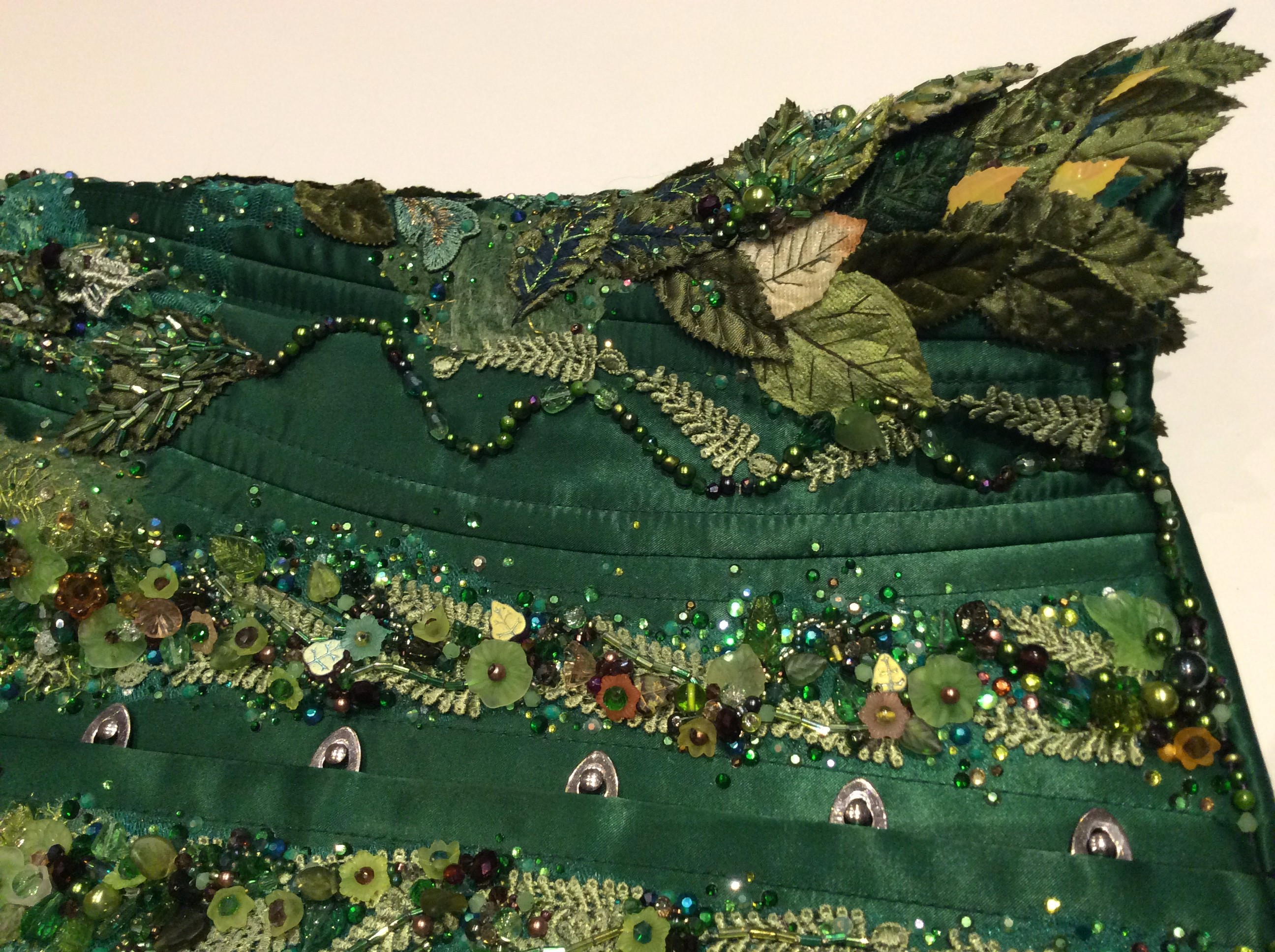 Bead embroidered green woman corset by Suzanne Forbes June 2017