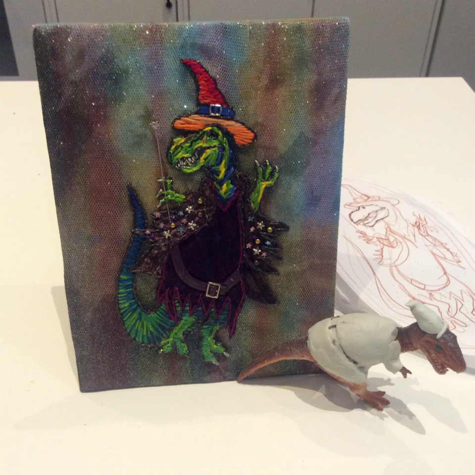 Queer dinowitch embroidery by Suzanne Forbes July 2017