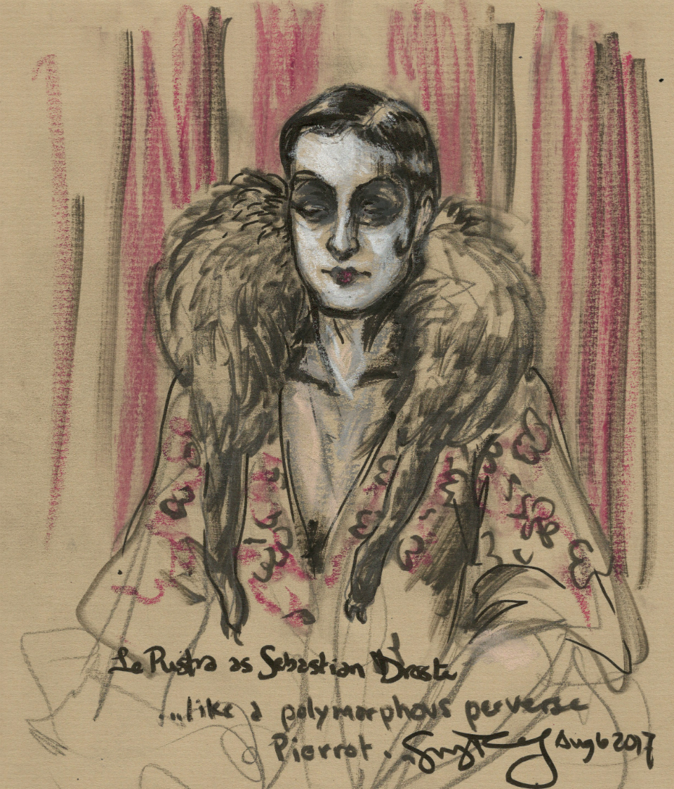 Le Pustra as Sebastian Droste fox stole drawn by Suzanne Forbes Aug 6 2017