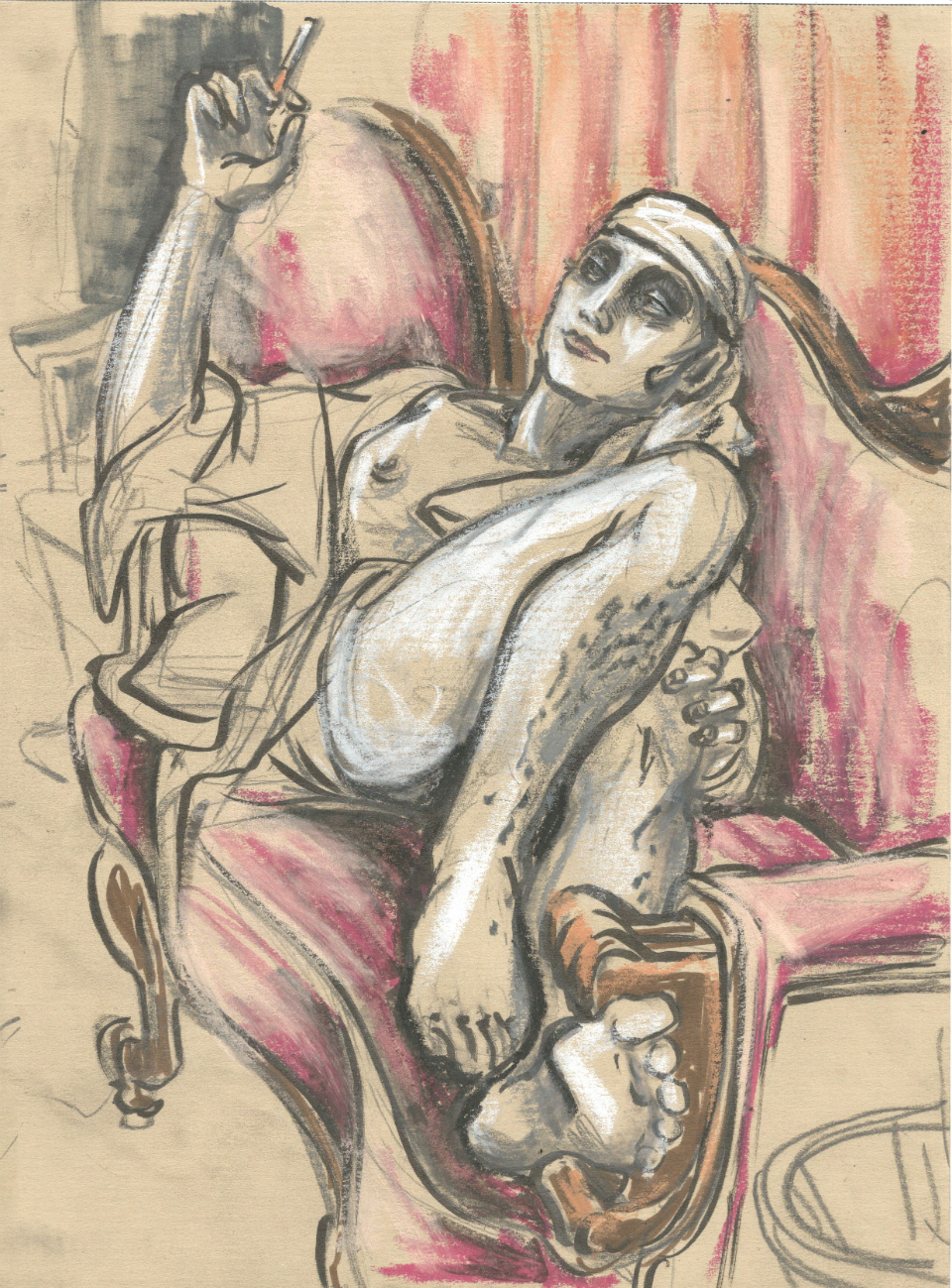 Le Pustra as Sebastian Droste reclining drawn by Suzanne Forbes Aug 6 2017
