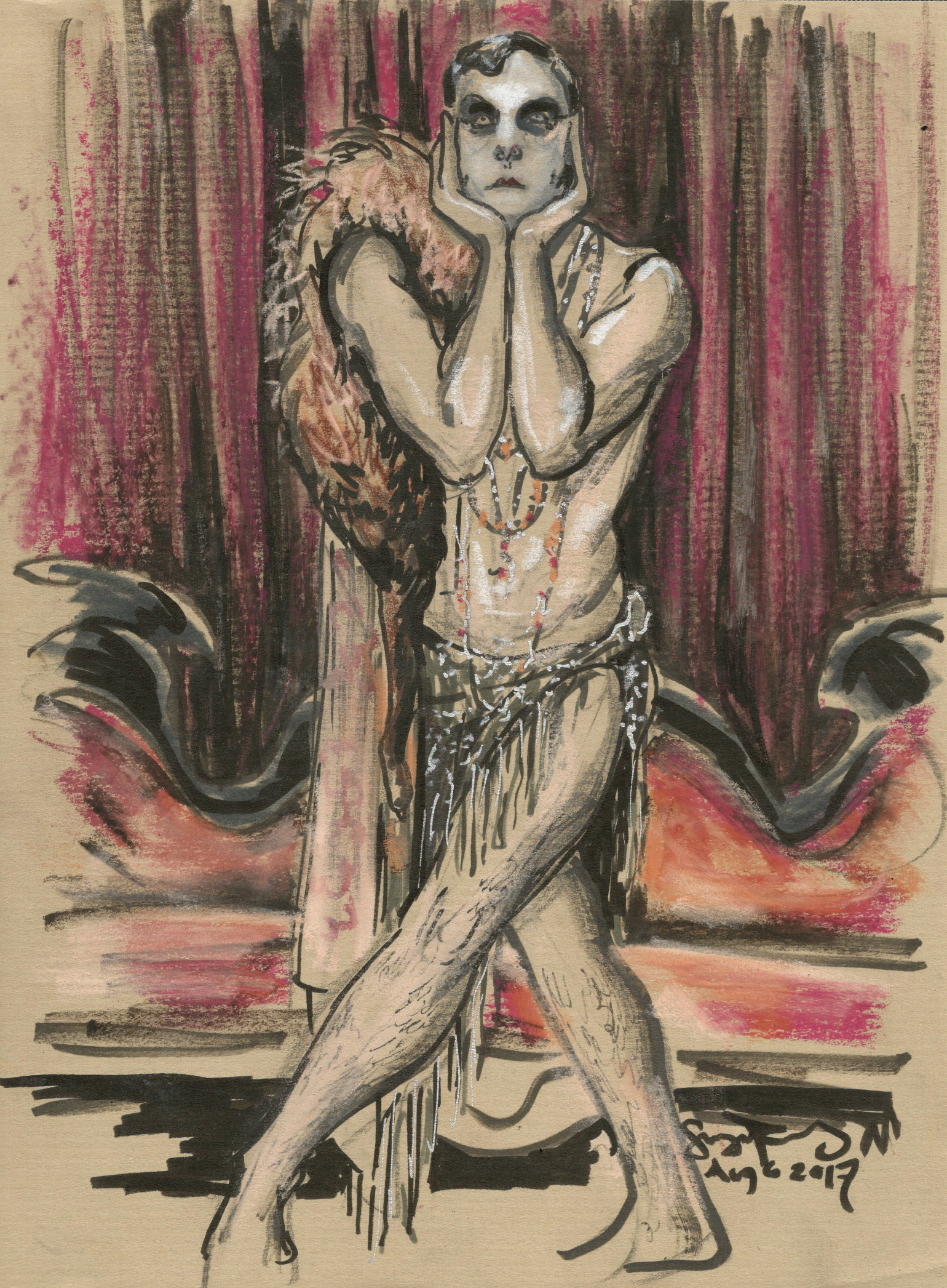 Le Pustra posing at Dr Sketchys Berlin by Suzanne Forbes at Dr Sketchys Berlin Aug 6 2017