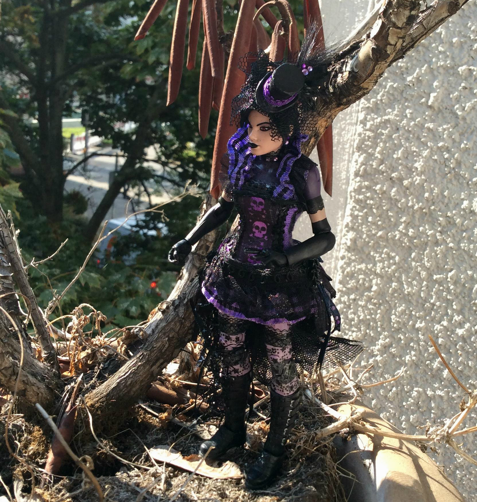 Nico Minoru action figure custom by Suzanne Forbes on balcony Sept 2017