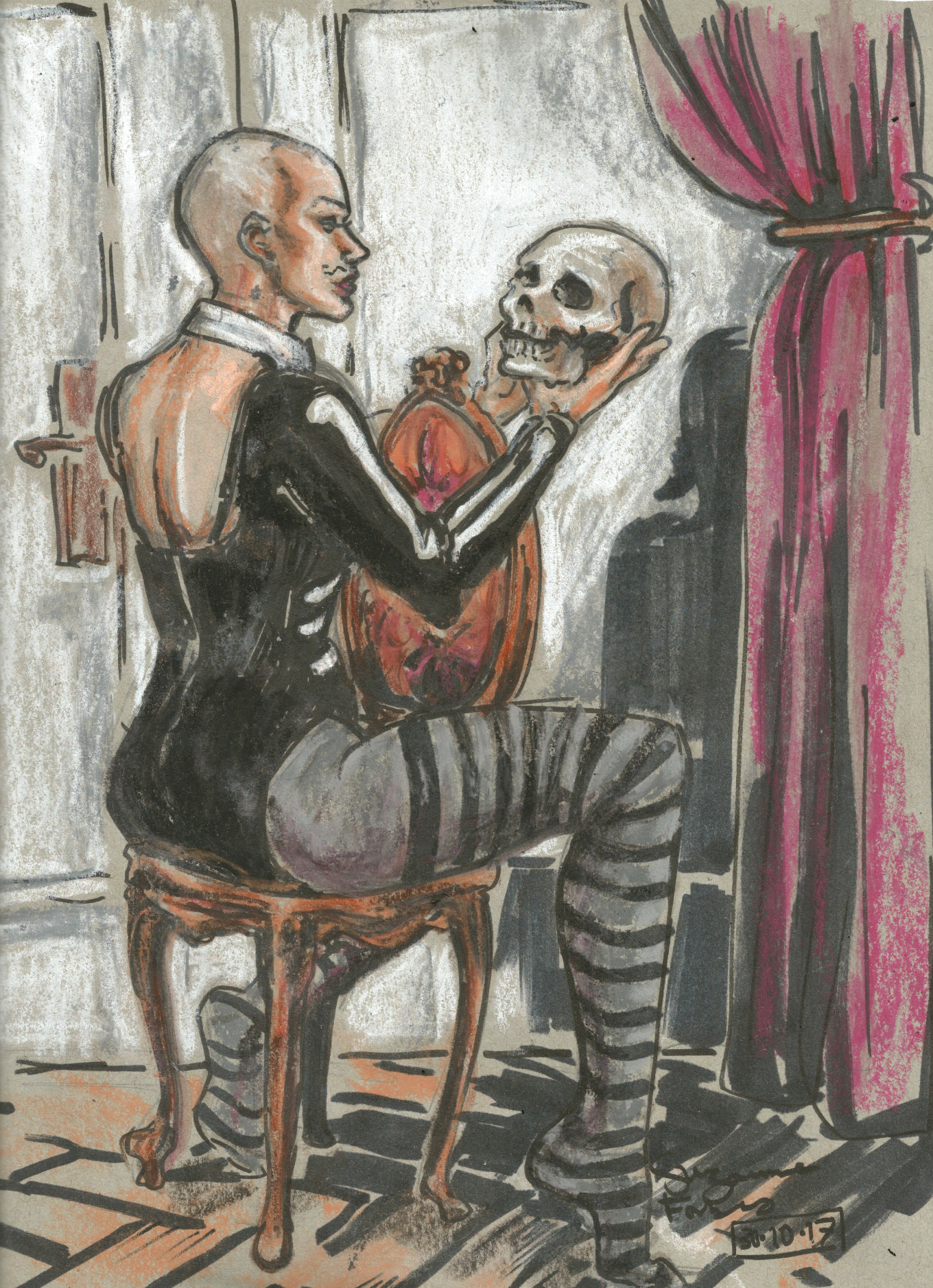 Miss Natasha Enquist with skull by Suzanne Forbes Oct 30 2017