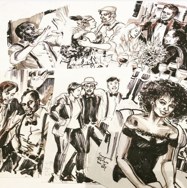 Holiday party drawings by Suzanne Forbes Dec 14 to 22 2017