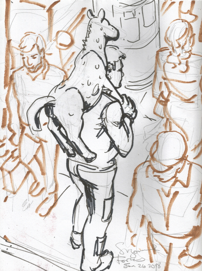 Guy with spotted horse seen from bus Suzanne Forbes Jan 26 2018