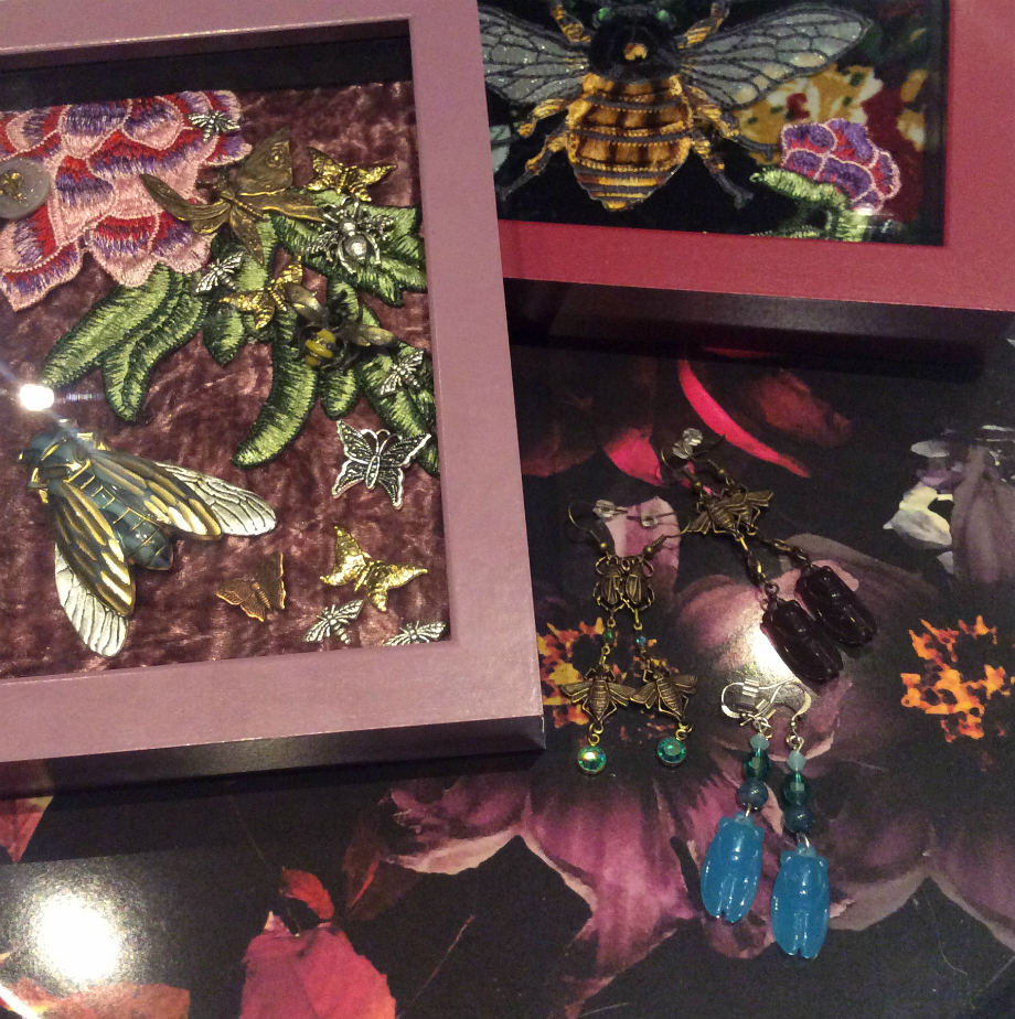 Insect earrings and shadowboxes by Suzanne Forbes Feb 2018