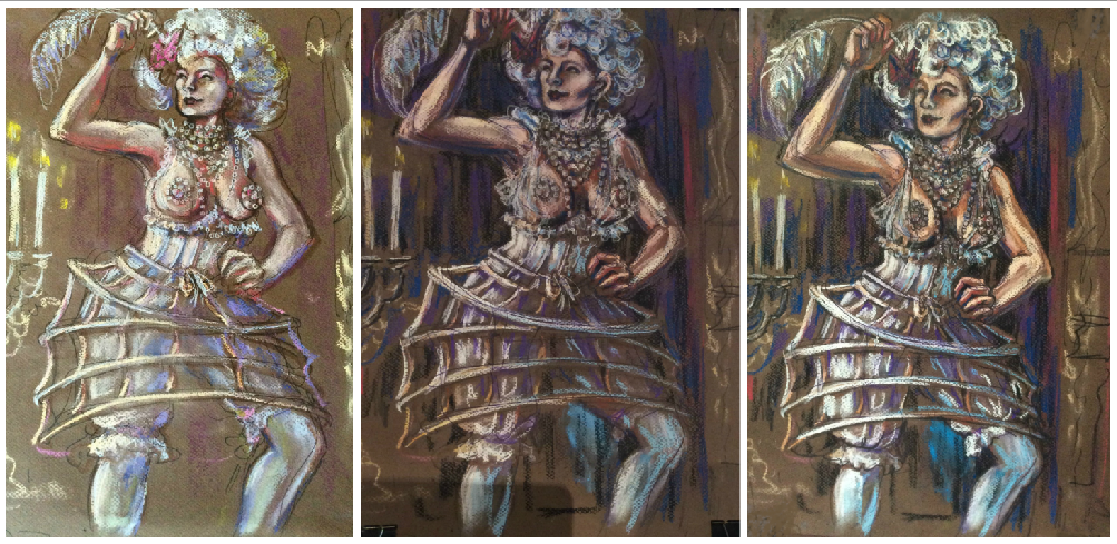 Portrait of Viva Lamore in media media and pastel work in process by Suzanne Forbes 2017 to 2018