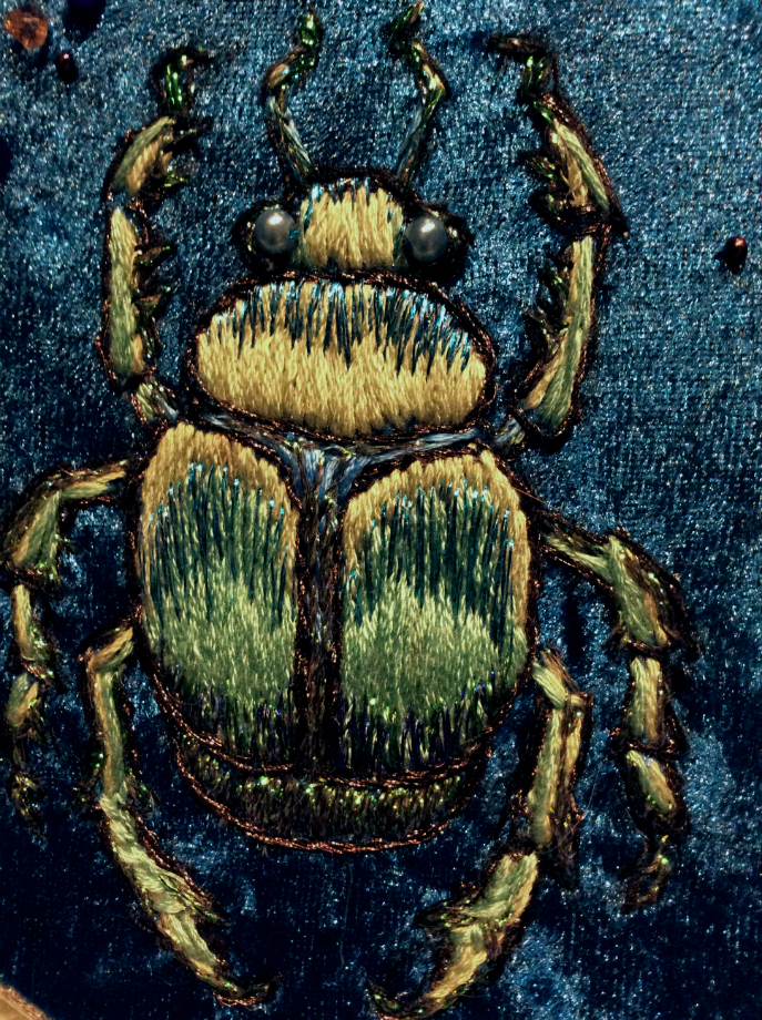 Embroidered beetle by Suzanne Forbes July 2018 detail