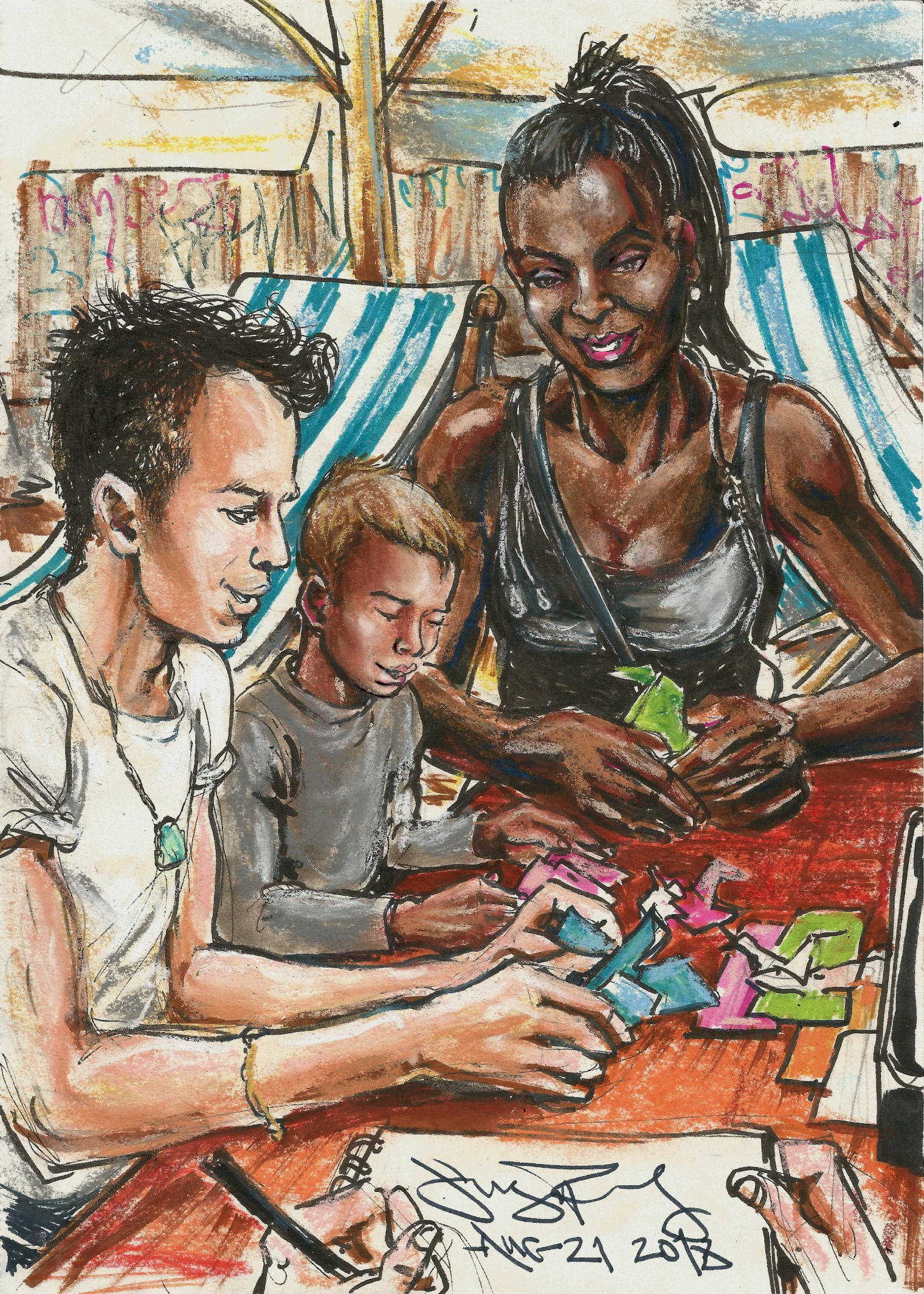 Antoine teaching origami at Hometown Berlin by Suzanne Forbes Aug 21 2018