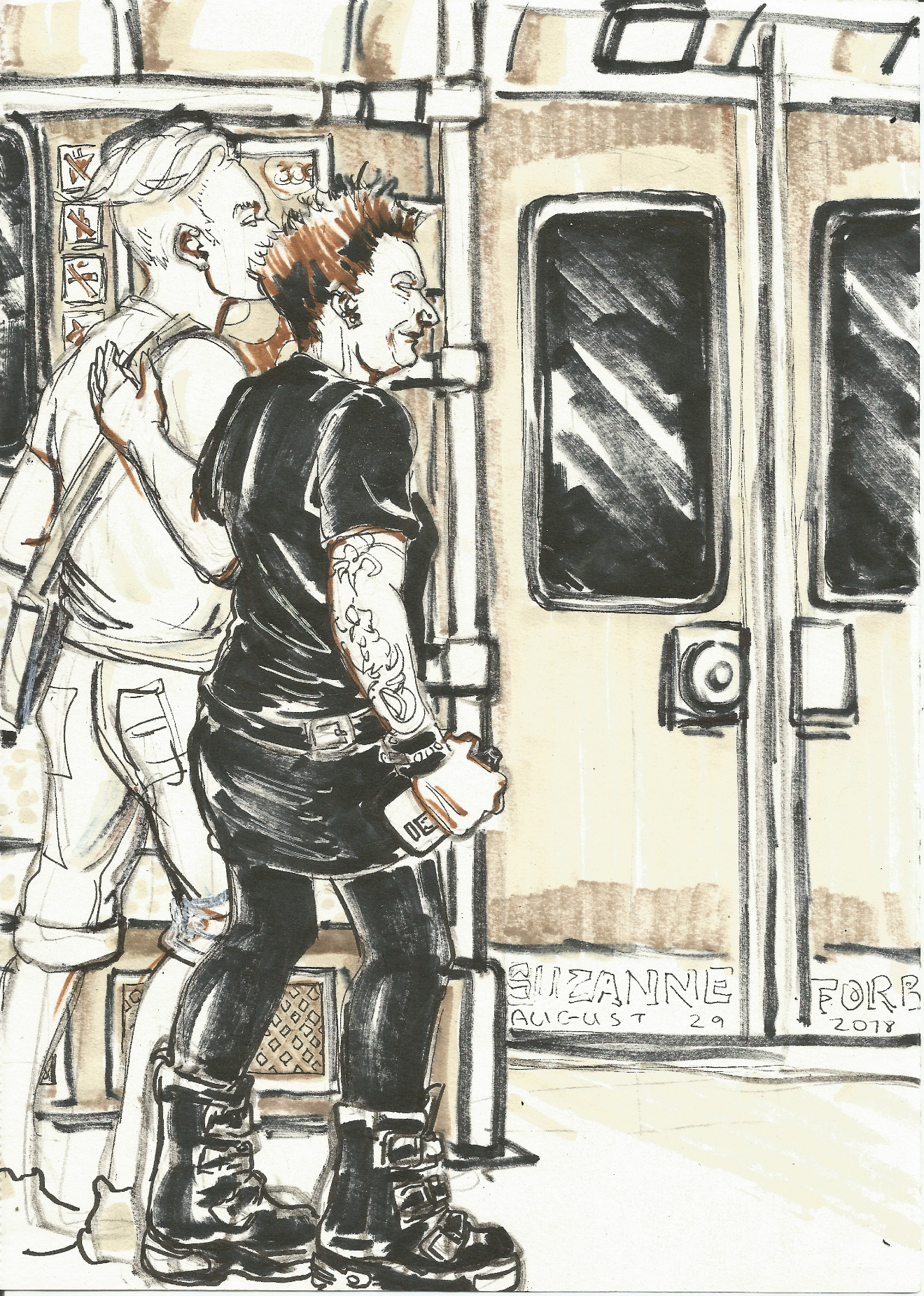 Punk mom and sporty son on U Bahn unterwegs by Suzanne Forbes Aug 29 2018