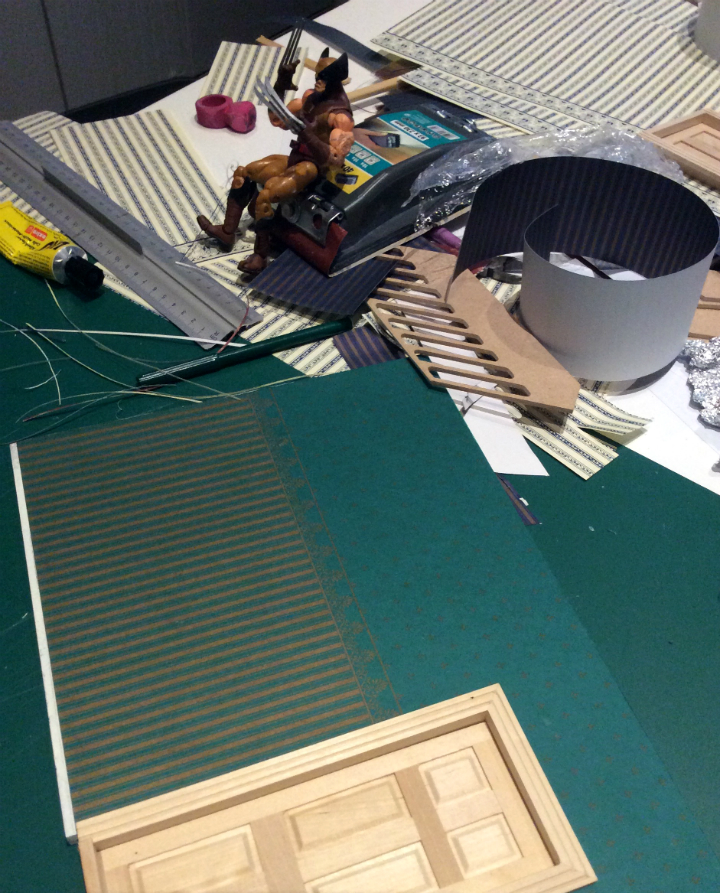 X Men dollhouse WIP by Suzanne Forbes Oct 2018 Logan and wall