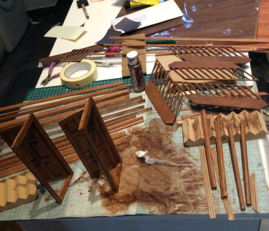 X Men dollhouse WIP by Suzanne Forbes Oct 2018 staining components