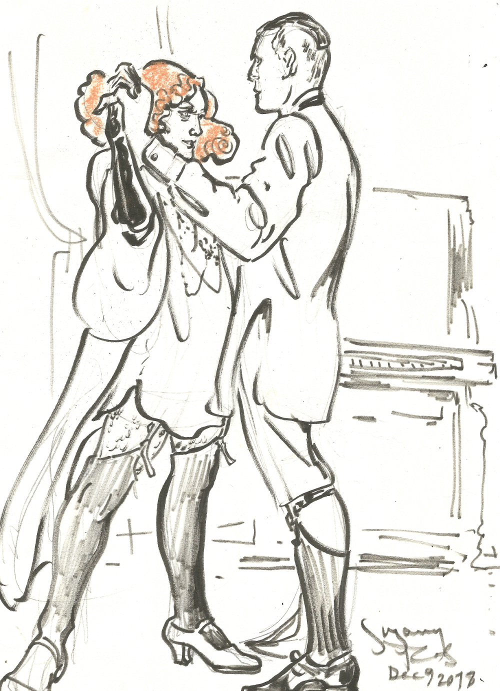Le Pustra and Lars dancing at Dr Sketchys Berlin Dec 9 2018 by Suzanne Forbes