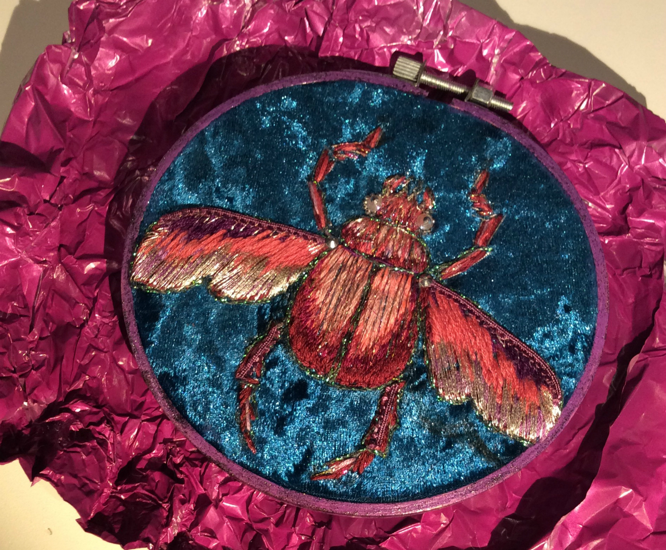 Pink embroidered beetle by Suzanne Forbes Dec 2018 2