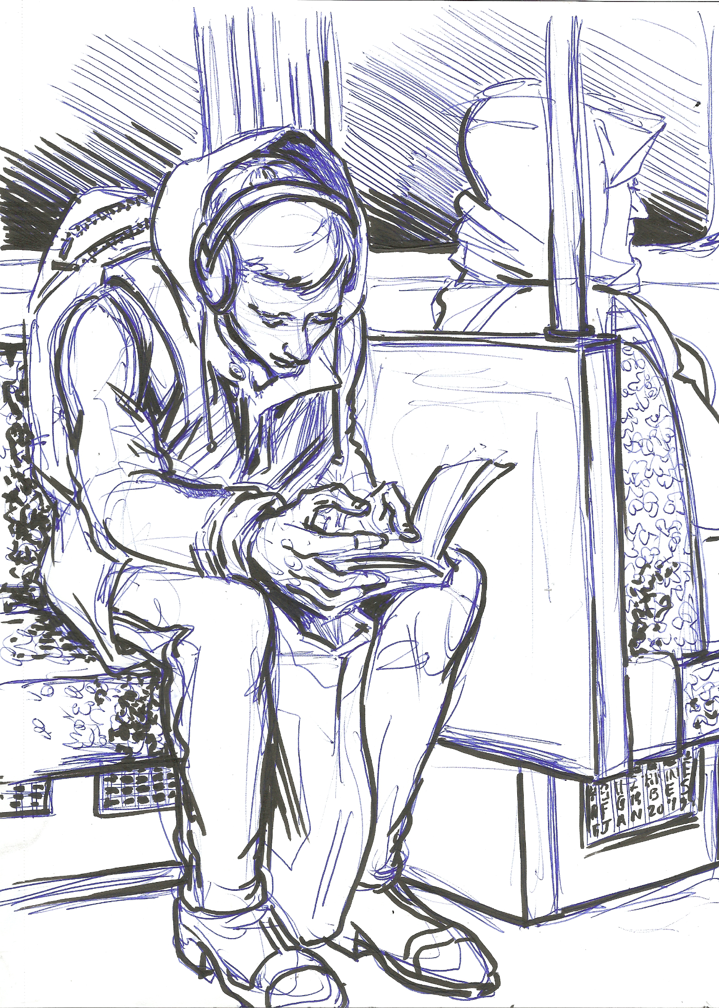 Unterwegs reading guy by Suzanne Forbes Jan 20 2019