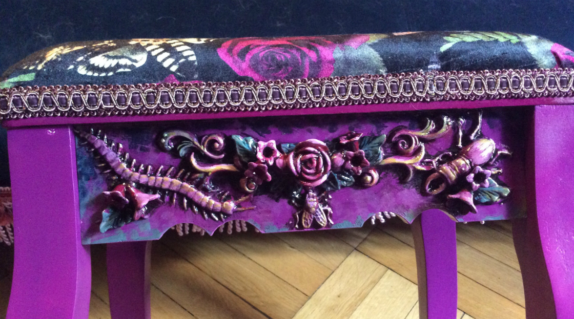 Beetle boudoir stool back by Suzanne Forbes April 2019