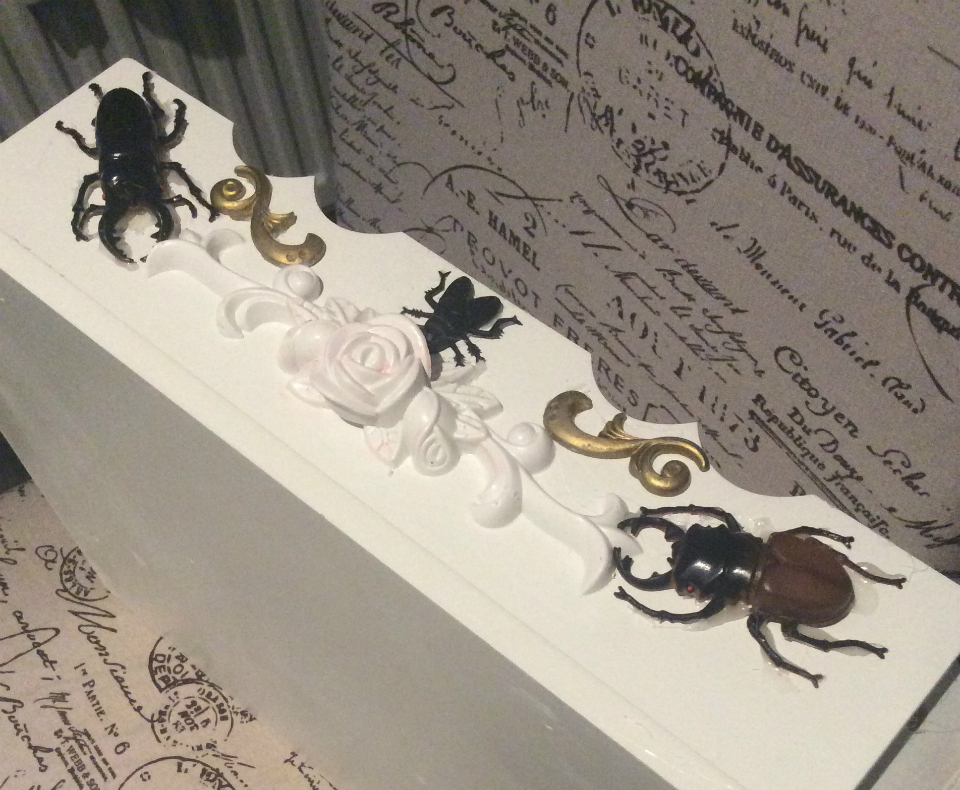 bug bricolage footstool wip back March 2019 suzanne forbes artist
