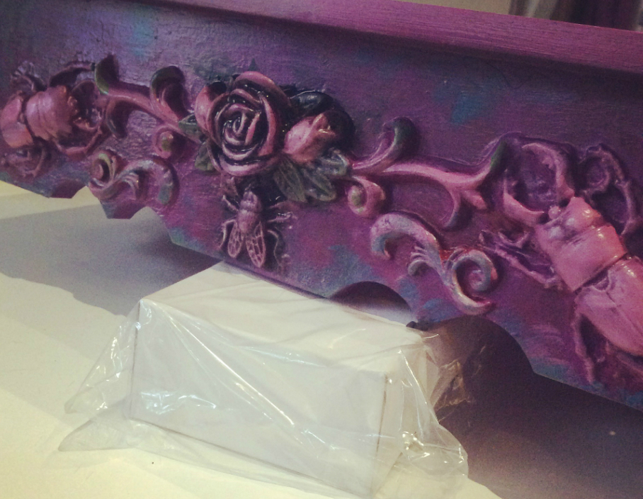 Bug bricolage footstool wip with painted accents March 2019 suzanne forbes artist