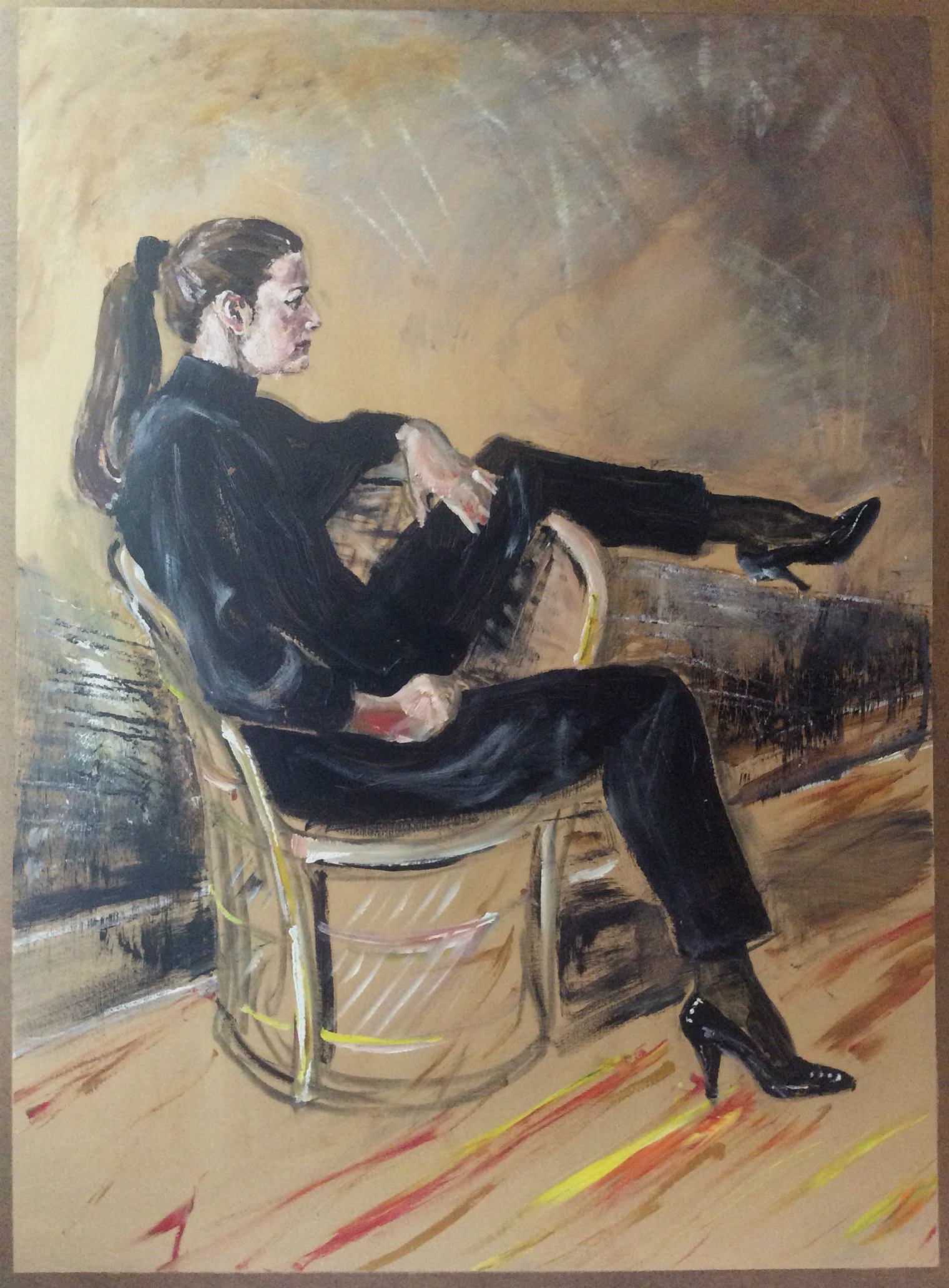 Portrait of Anita in black on masonite from winter 1990 Suzanne Forbes aka Rachel Ketchum