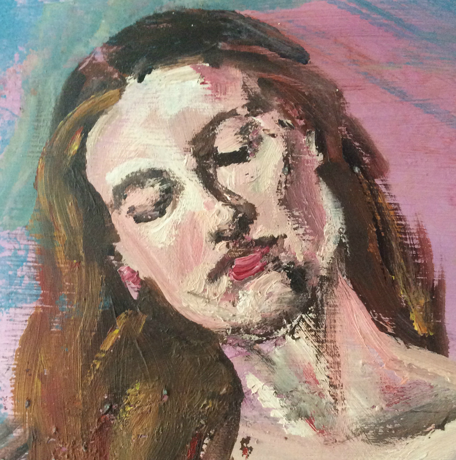 Portrait of Anita in pink on masonite from winter 1990 Suzanne Forbes aka Rachel Ketchum detail