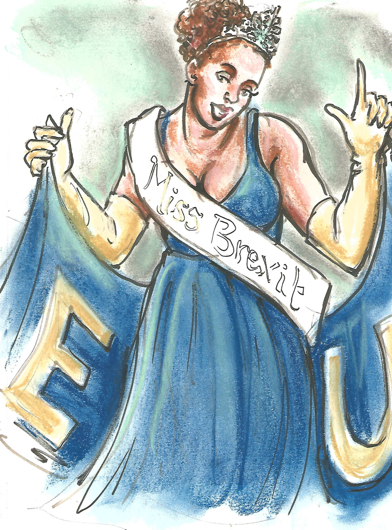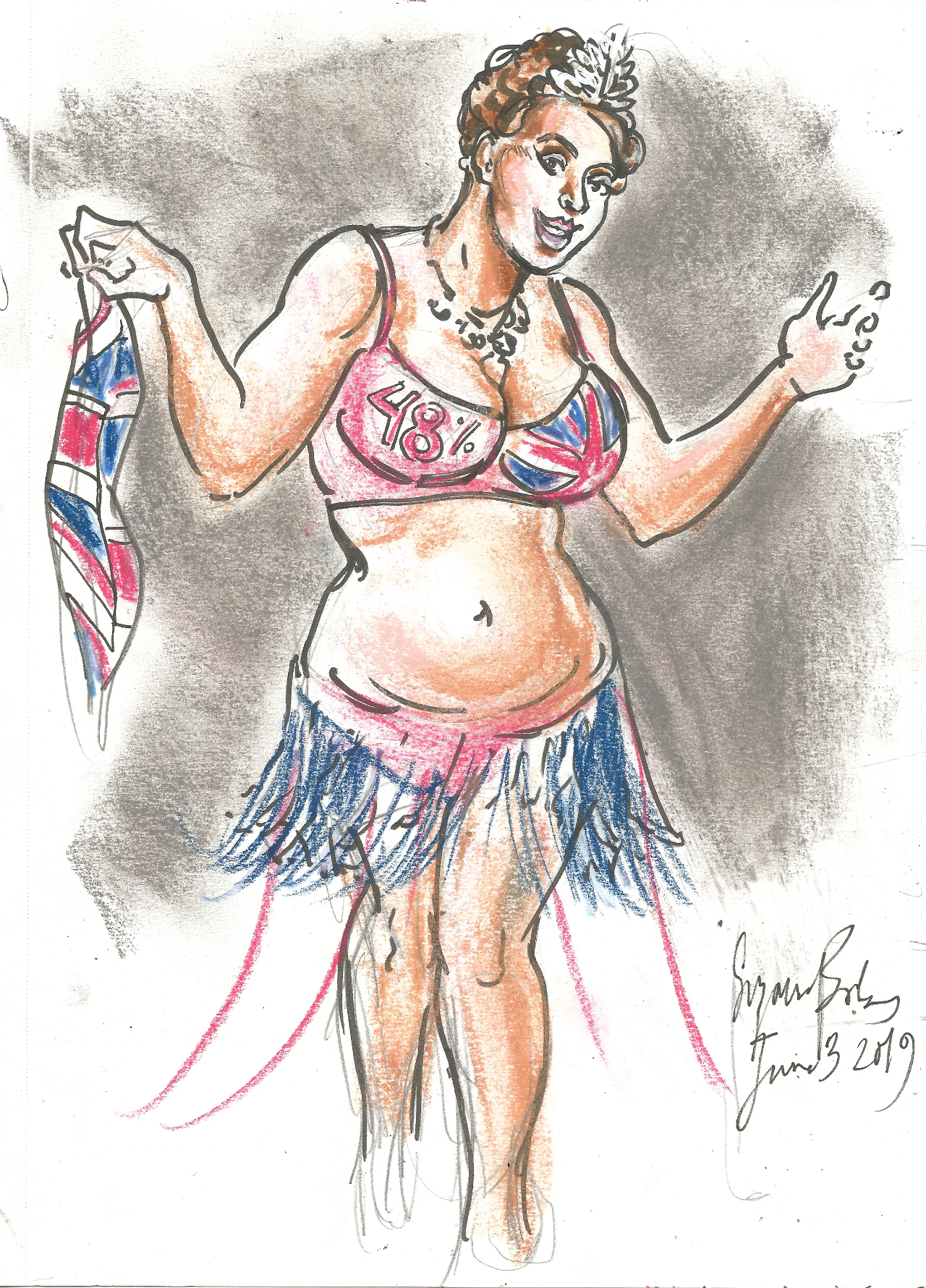 Of course, there was producer Cadbury Parfait doing her fabulous “Miss Brexit” act, with its EU banner reveal which brings down the house, and the moment when she discards the stinky ol’ British flag, seen above! Her full costume and the EU reveal, below!