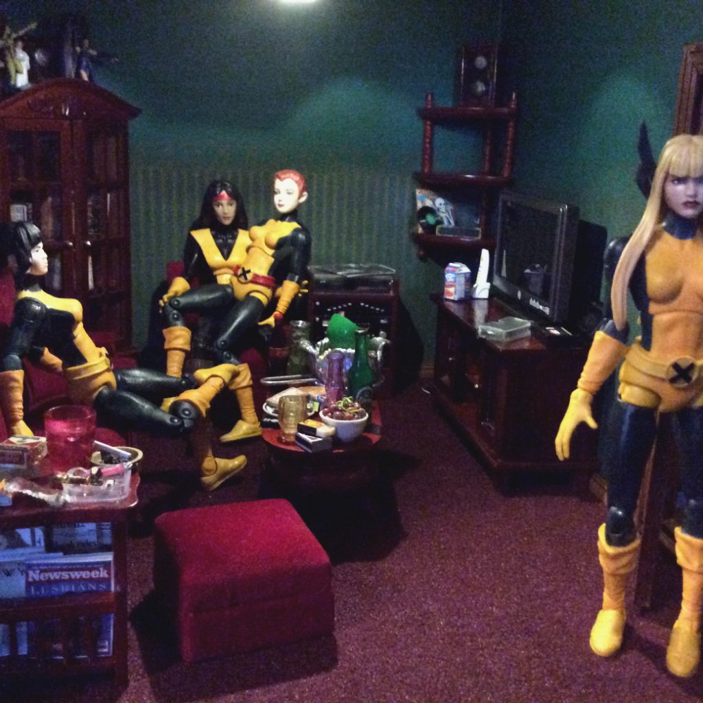Rahne Sinclair and Dani Moonstar action figure customs living room with Shan and Illyana by Suzanne Forbes June 2019