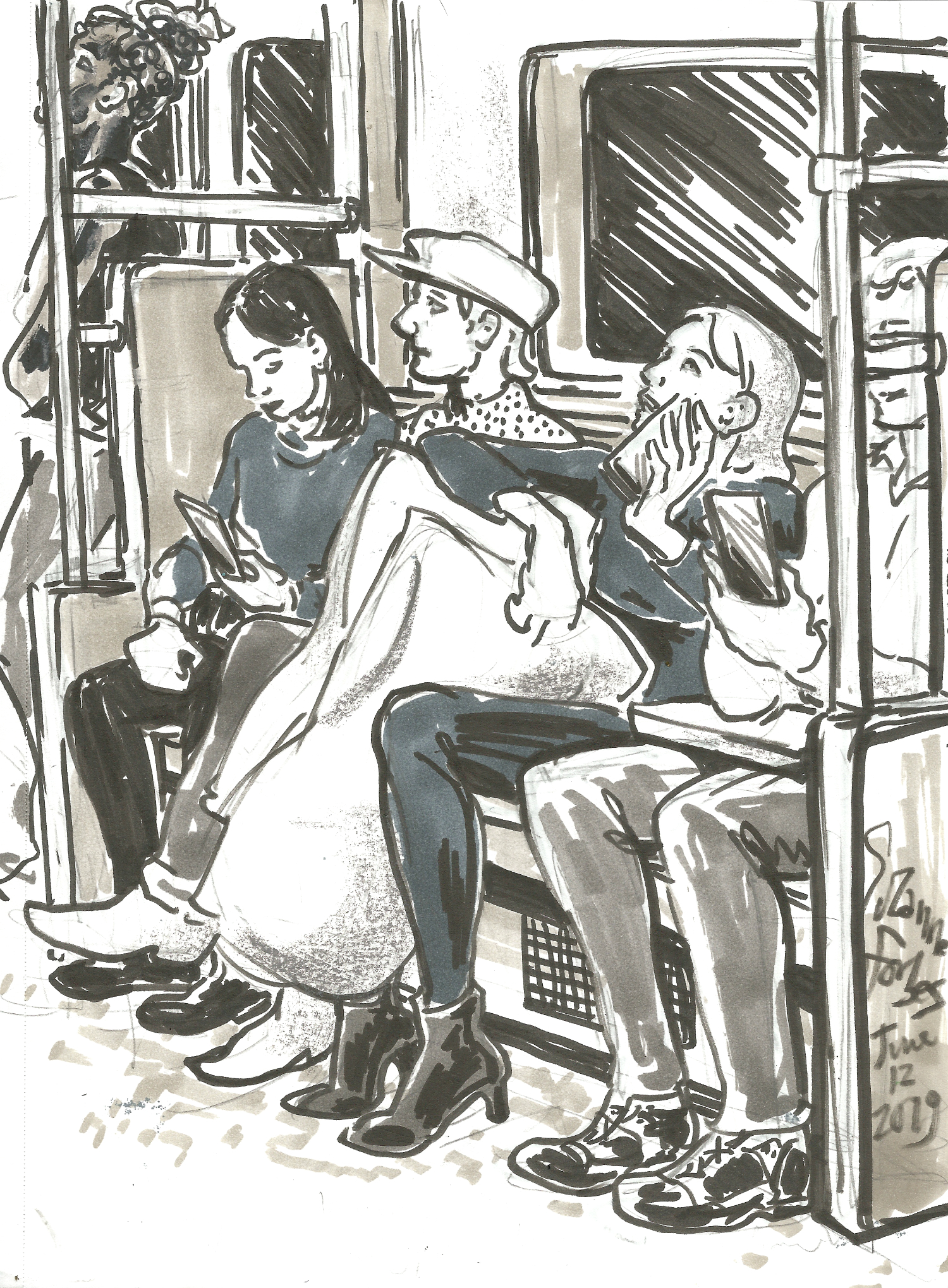 Unterwegs June 2019 lady with a pillow by Suzanne Forbes