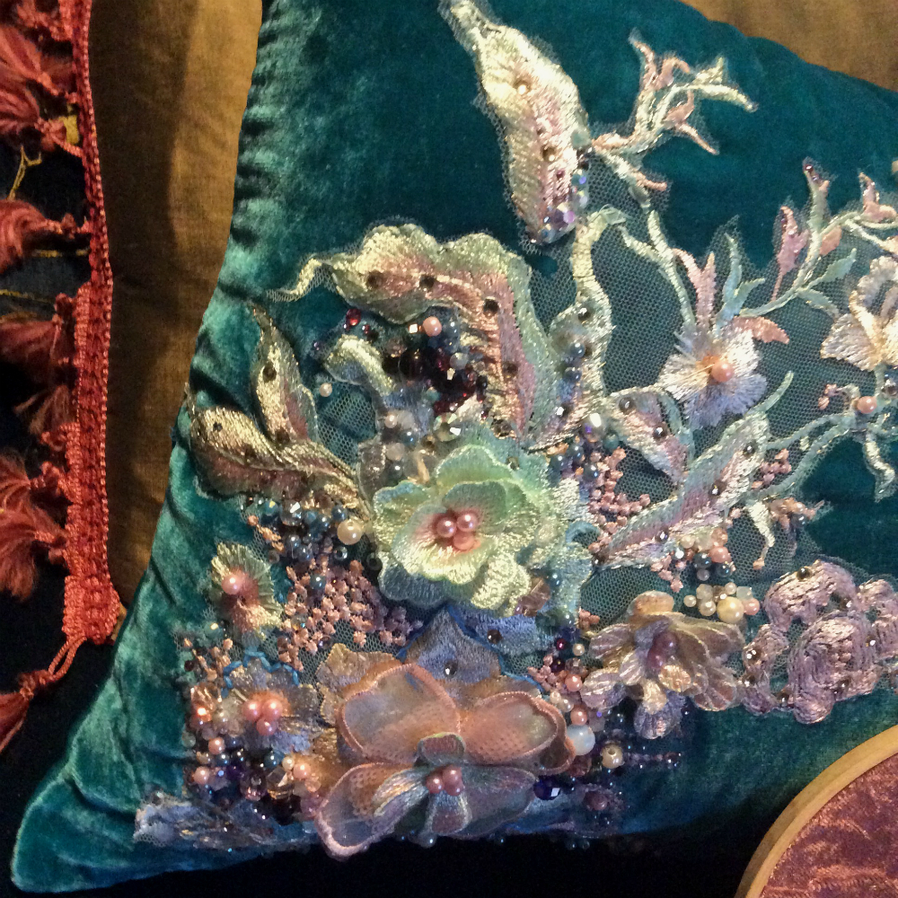 Bead embroidery embellished pillow Suzanne Forbes Aug 1 2019