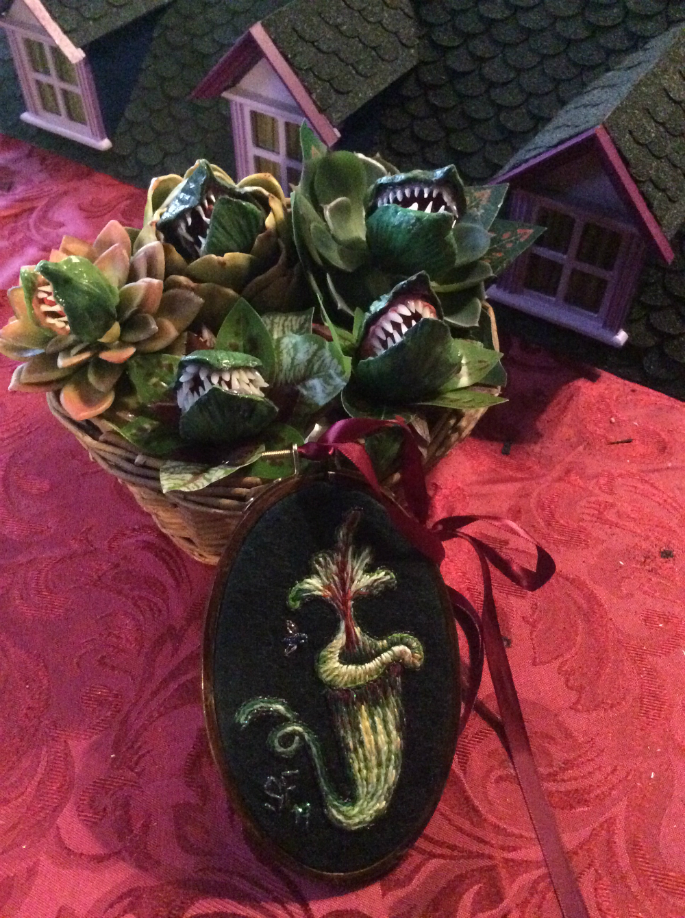 Embroidered pitcher plant and Clay Alien Venus Flytraps by Suzanne Forbes November 2019