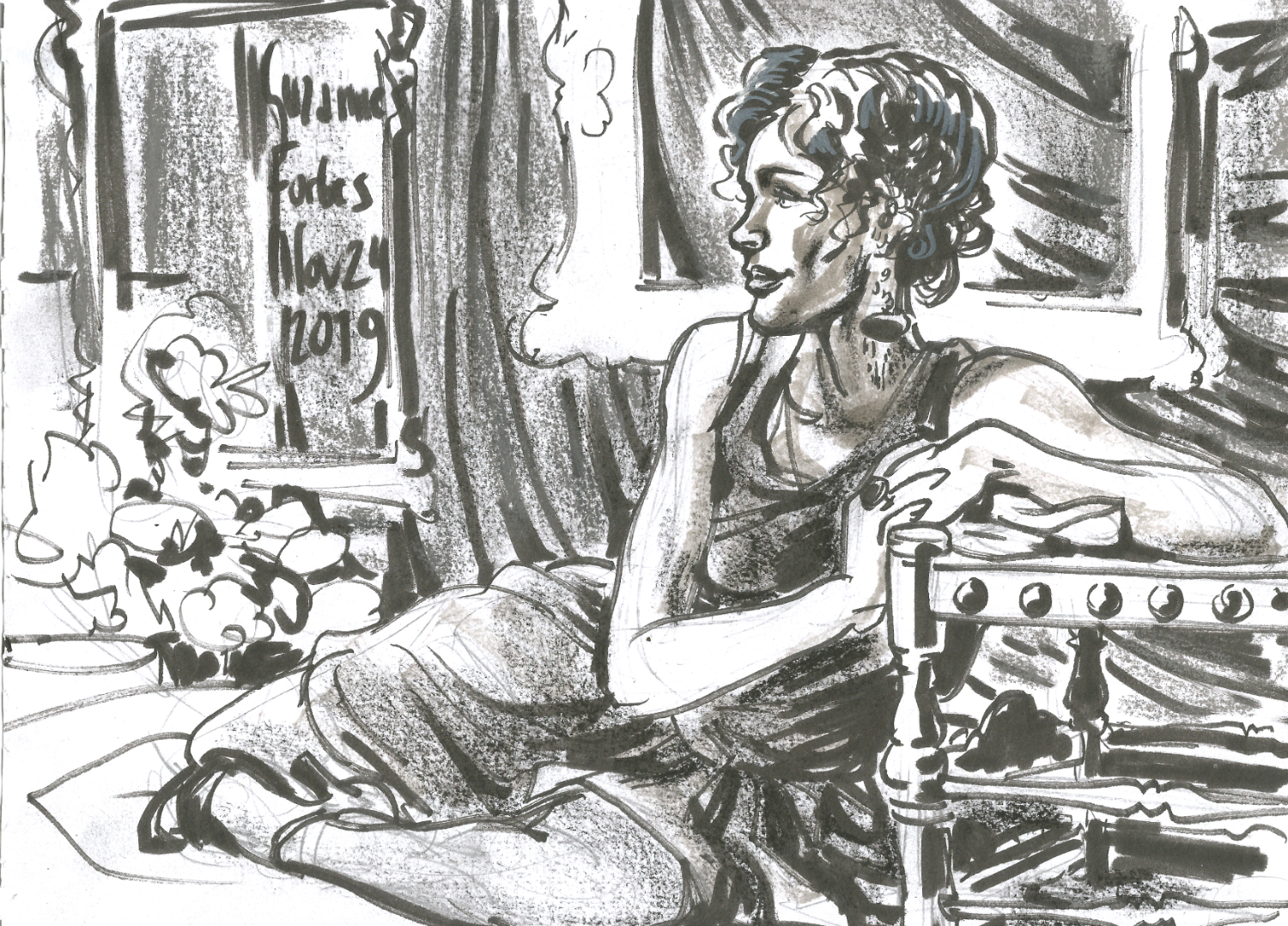 Liliana Velasquez at Dr Sketchys Berlin Drink and Draw kunsthaus Nov 24 2019 by Suzanne Forbes