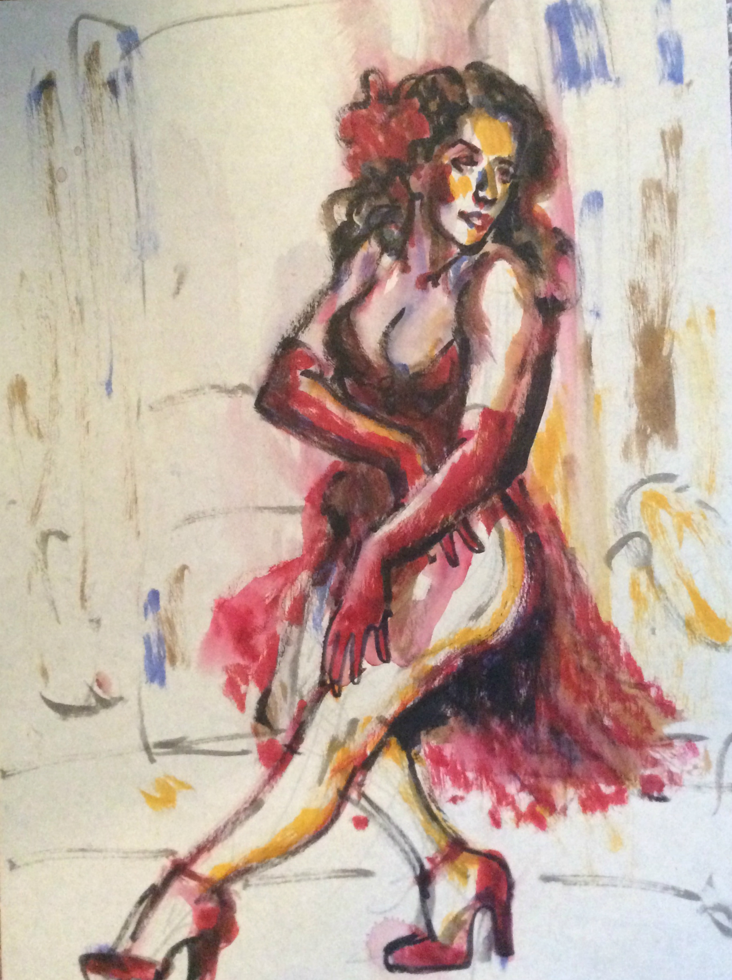 Watercolor marker drawing of Chiqui Love in red by Suzanne Forbes Jan 28 2020