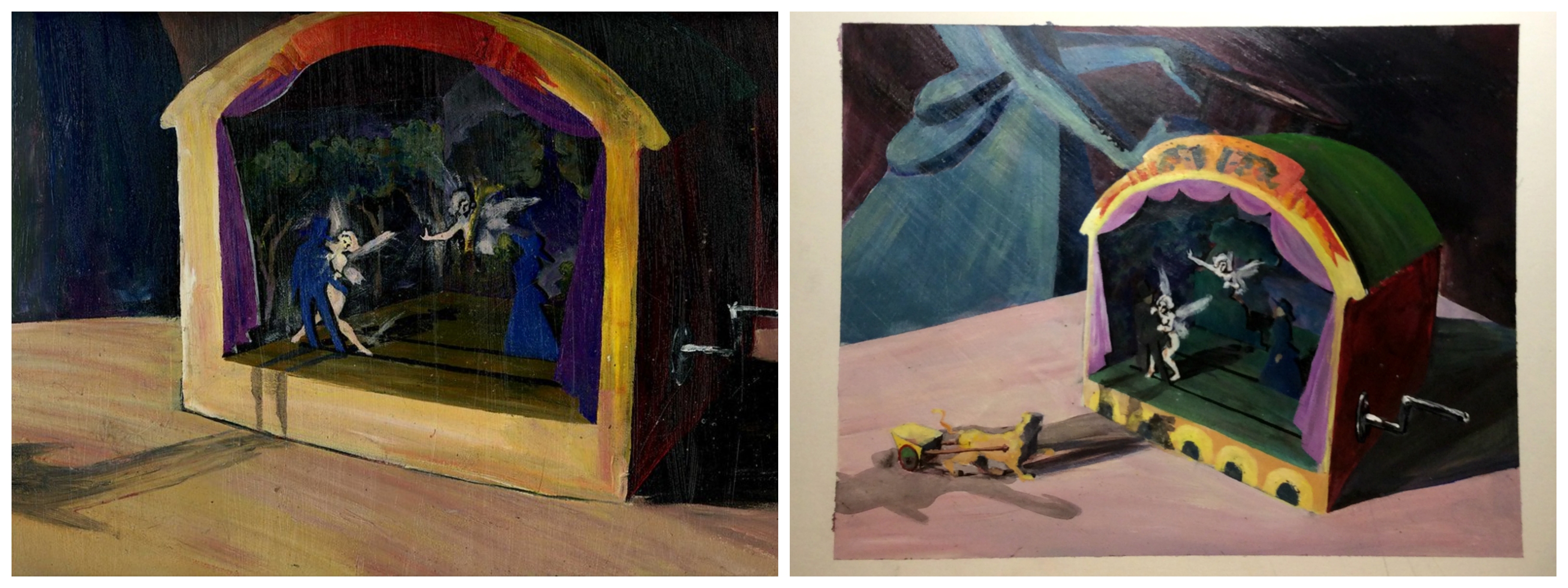 Theater Box paintings for Tom Garrettt Illustration Class Fall 1990 Rachel Ketchum aka Suzanne Forbes