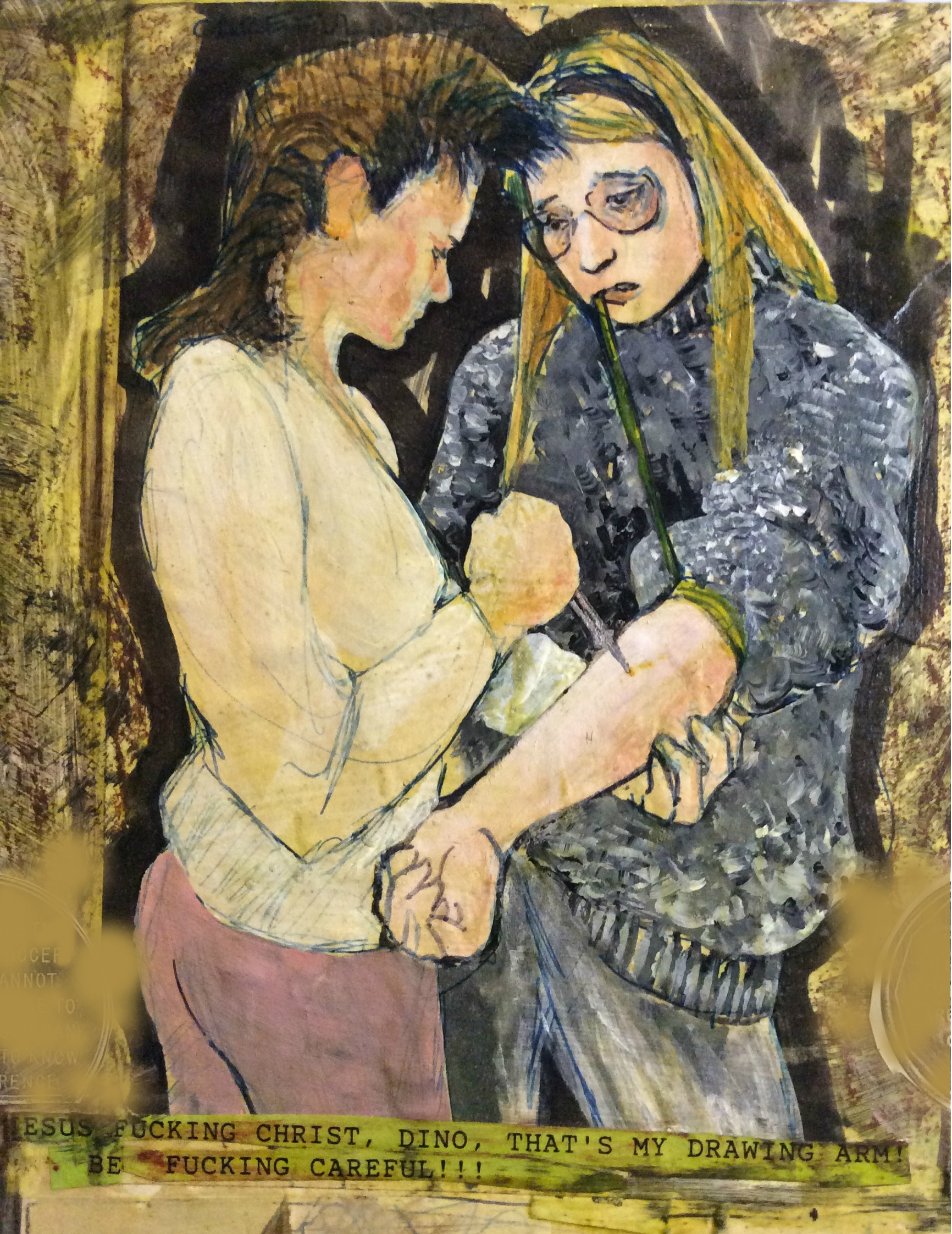Dino with me mixed media on paper Fall 1991 Rachel Ketchum aka Suzanne Forbes