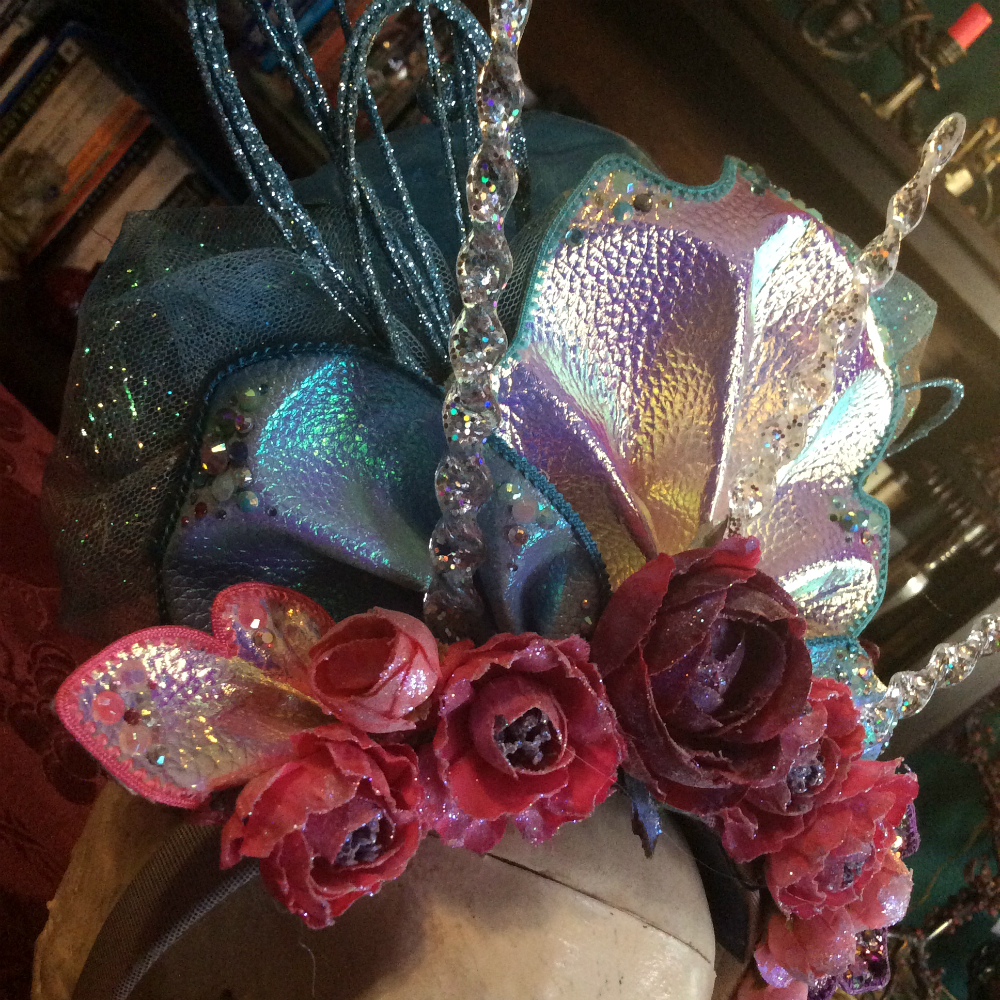 Holographic glitter vinyl pvc unicorn fairy headdress by Suzanne Forbes February 2020 left