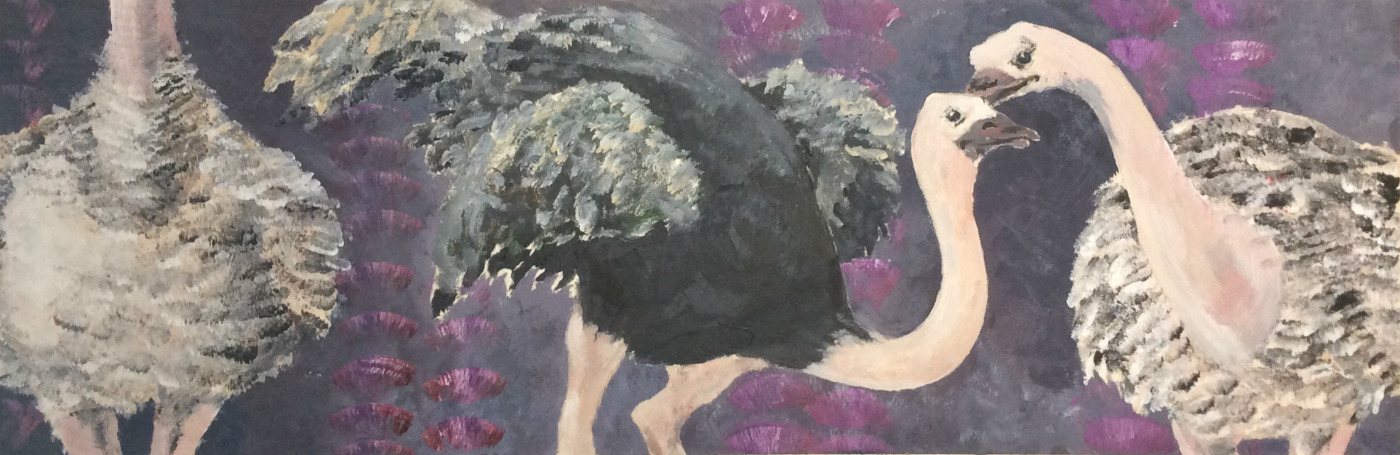 Ostrich painting for Tom Garrettt Illustration Class 1991 by Rachel Ketchum aka Suzanne Forbes