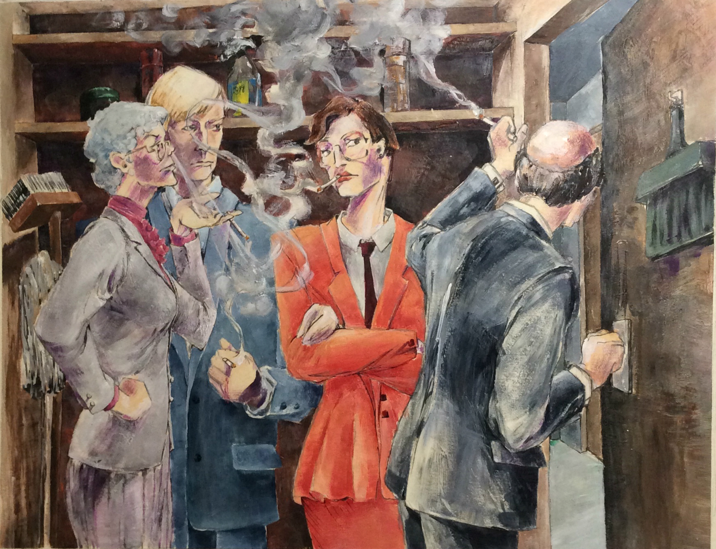 Smoker closet final for Tom Garrettt Illustration Class Fall 1990 by Rachel Ketchum aka Suzanne Forbes