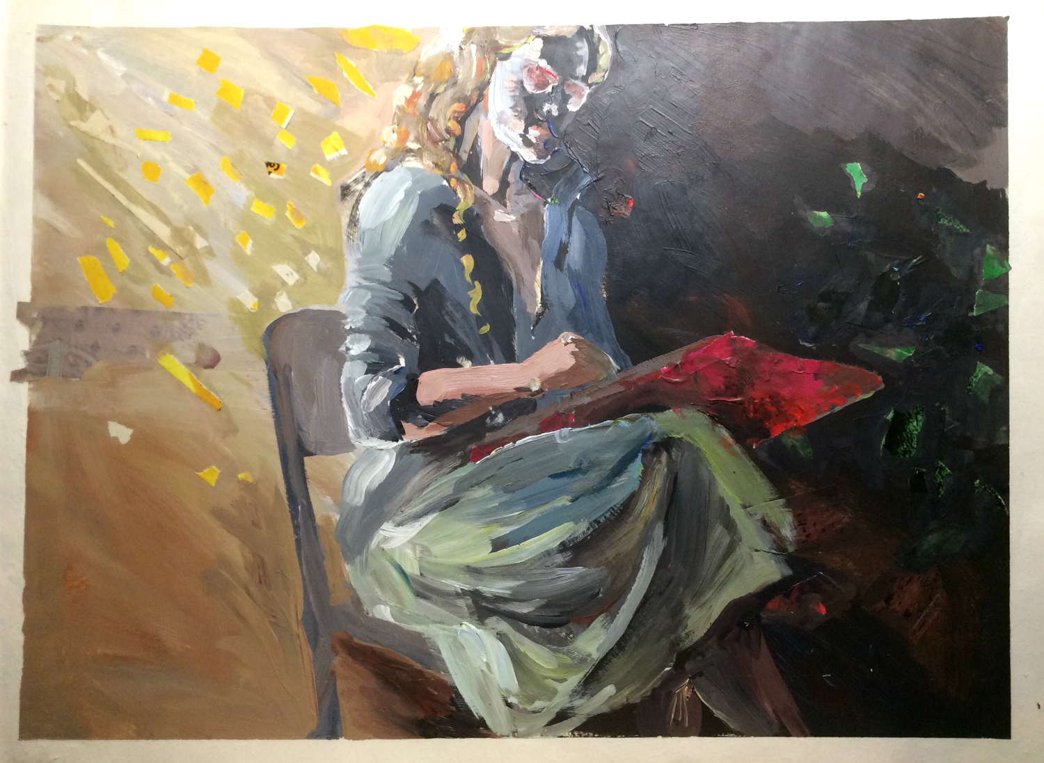 Horizontal self portrait acrylic on paper by Rachel Ketchum aka Suzanne Forbes 1989 or 1990