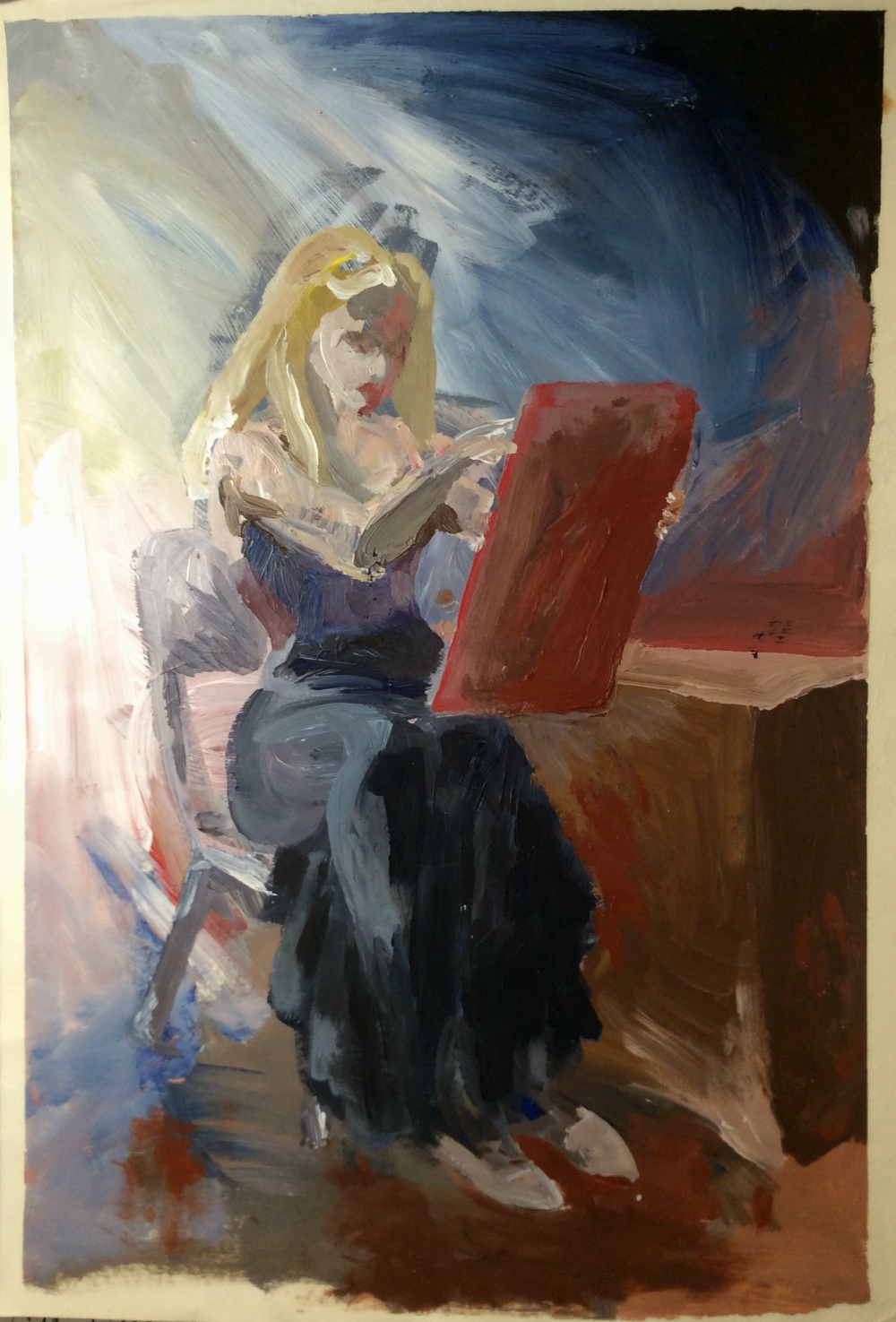 Vertical self portrait acrylic on paper by Rachel Ketchum aka Suzanne Forbes 1989 or 1990