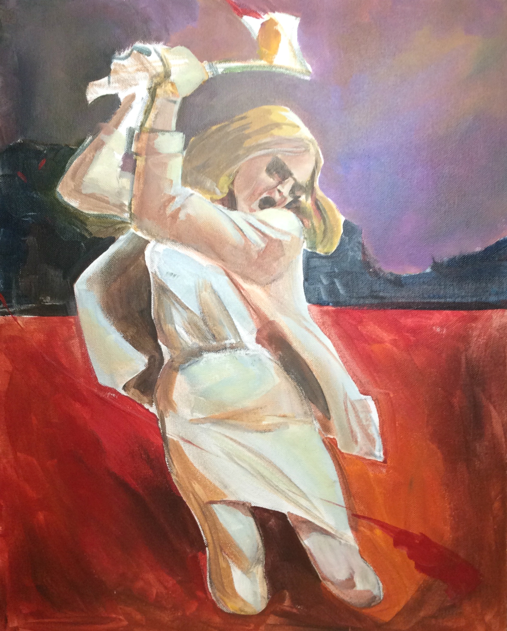 Vertical fantastical self portrait acrylic on paper by Rachel Ketchum aka Suzanne Forbes 1992