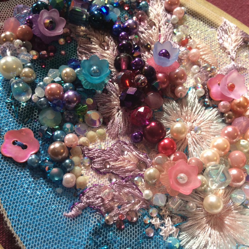Opalescent bead embroidery WIP by Suzanne Forbes March 20 2020 detail 1