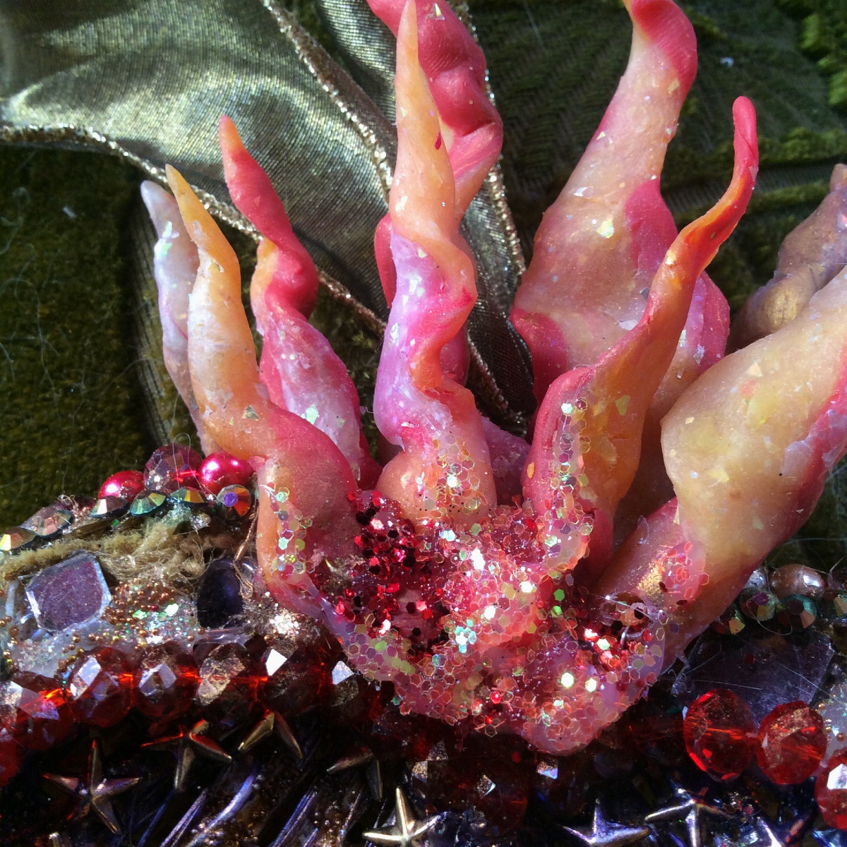 Jeweled Sacred Heart by Suzanne Forbes March 24 2020 flame detail
