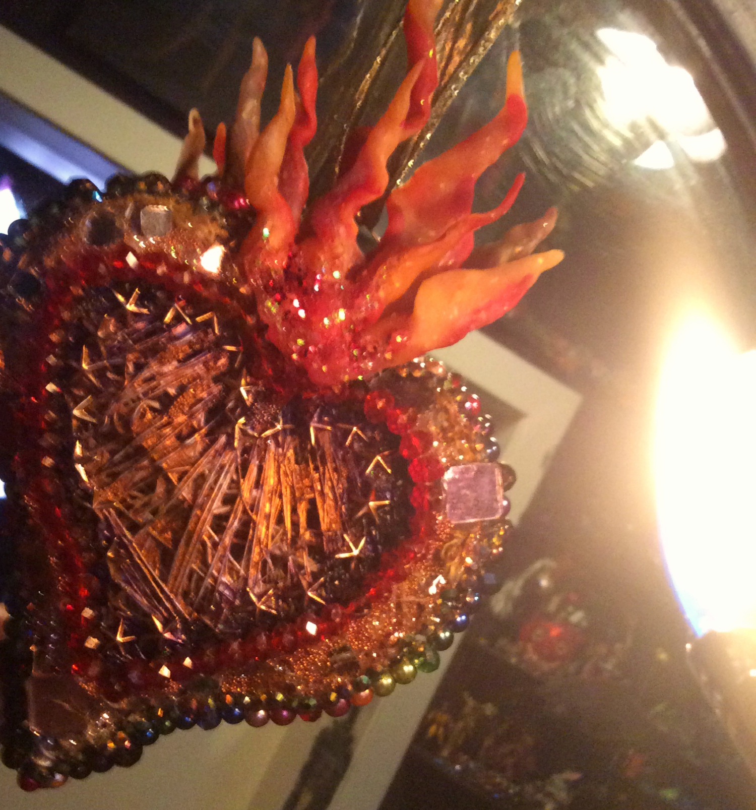 Jeweled Sacred Heart lit by fire by Suzanne Forbes March 24 2020