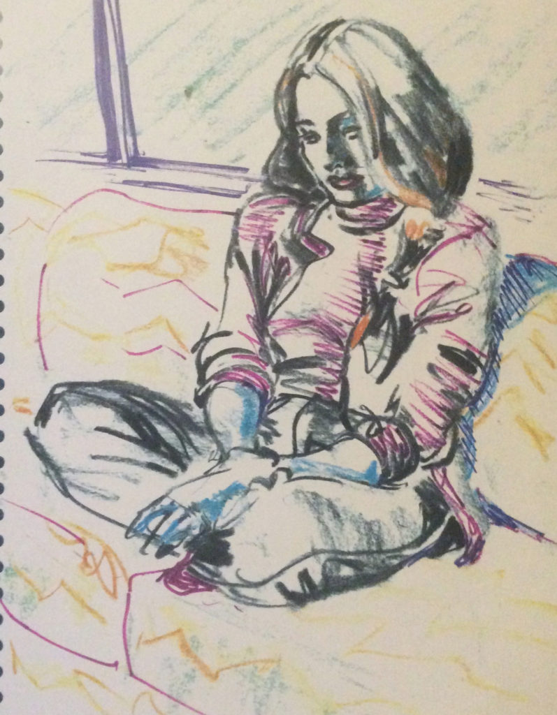 The drawings above and below weren’t homework assignments; they were friend portraits, done for Anita to keep.