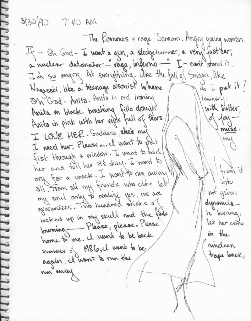 It was a short time, less than four months; Tom found his own place, Anita was forced to return to California because of some deeply unjust carceral bullshit, and I had to give up the big flat and get a place by myself. Below is a page from my sketchbook, when we learned she would have to go back to prison. It was devastating.
